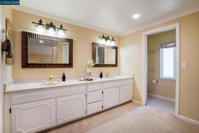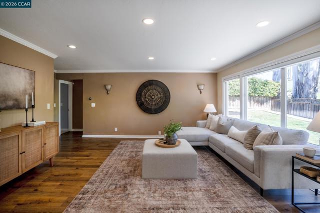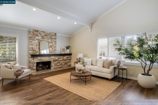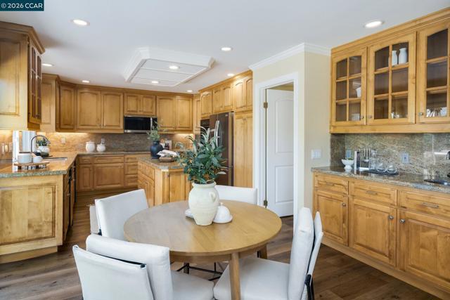Located in the sought-after gated community of Crow Canyon Country Club, this home sits on a quiet court backing to open space. Upon entry, this home impresses with vaulted ceilings and spacious living areas. The living and dining areas flow effortlessly together, elevated with upgraded flooring, elegant crown molding, and a stone fireplace that anchors the main living space. At the heart of the home is the generous chef’s kitchen, featuring extensive wood cabinetry, granite countertops, a center island, built-in appliances, and a charming breakfast nook overlooking the backyard & opening to the bright family room. Large sliding glass doors connect the kitchen and dining areas directly to the outdoor entertaining spaces. This floorplan offers a desirable main level bedroom & full bath. Step outside to a spacious backyard retreat with peaceful hillside views and no rear neighbors, creating a private & tranquil setting. The outdoor space is designed for entertaining and relaxation, featuring a large patio, lawn area, and a beautiful covered pavilion lounge area. An impressive built-in outdoor kitchen and bar provides the perfect place to gather with family and friends. Ideal location, close to the 2nd gate & within the award-winning San Ramon Valley school district.