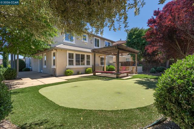 This Exquisite Home features Breathtaking Panoramic Views on one of the finest lots in all of Diablo Grande. This home has 4 bedrooms, 3.5 bathrooms, a spacious loft retreat, formal living and dining area, family room with fireplace and 2,954 sqft. of living space. The gourmet kitchen has cherry-stained cabinets, granite counter tops, custom backsplash, stainless steel appliances, etched glass pantry door, plus sit-in breakfast bar. The primary suite features a spacious bathroom with dual sink vanity with cherry-stained cabinets, large walk-in closet and jacuzzi tub. Other features include solid oak hardwood floors on the main level, downstairs mini suite, premium carpet, Hunter Douglas blinds, wrought iron staircase with cherry railings, custom built refrigerated wine bar in the family room, extra recessed lighting throughout, and surround sound speaker system. The outdoor living space features a 12x30 custom view deck with recessed lighting and retractable awning allowing for taking in the natural beauty of nature’s endless hillscapes, custom landscaping, mature trees, putting green, arbor with ceiling fan, outdoor stainless steel barbeque island with granite countertop, stainless-steel sink and refrigerator. This Home has it All!