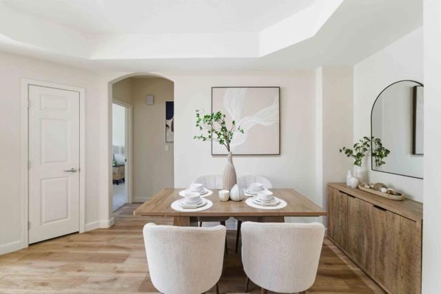 Great executive condo with plenty of sunlight. This 2 bedroom, 2 bathroom condo is complete with a large kitchen, separate dining area, and spacious living room. Beautiful new LVP flooring and new paint. The kitchen features cherry cabinets, gas range, and new quartz counters and backsplash. There is a pantry, plenty of cabinet storage, and lots of counter space. This is a wonderful kitchen if you enjoy cooking or if you like to entertain. Lots of windows in the living room provide plenty of natural sunlight. Large primary bedroom with upgraded en suite bathroom retreat, and his and her closets. The guest bedroom includes a large walk-in closet. Property includes 2 full-size, single stall parking spaces. Balcony off the living room provides access to fresh air and there is a bonus storage closet to hide your cleaning supplies or holiday decorations. Great downtown location walking distance to San Pedro Square, SAP, theaters, restaurants, and nightlife. Close to shopping at Coleman Shopping Center, and easy access to Highways 87, 101, 280, and 880.