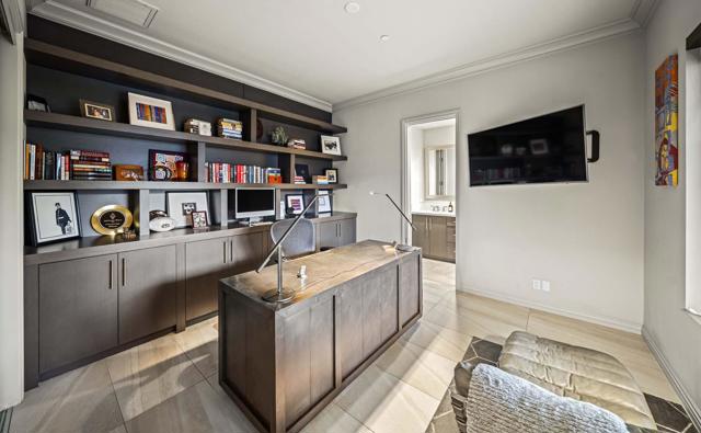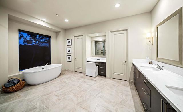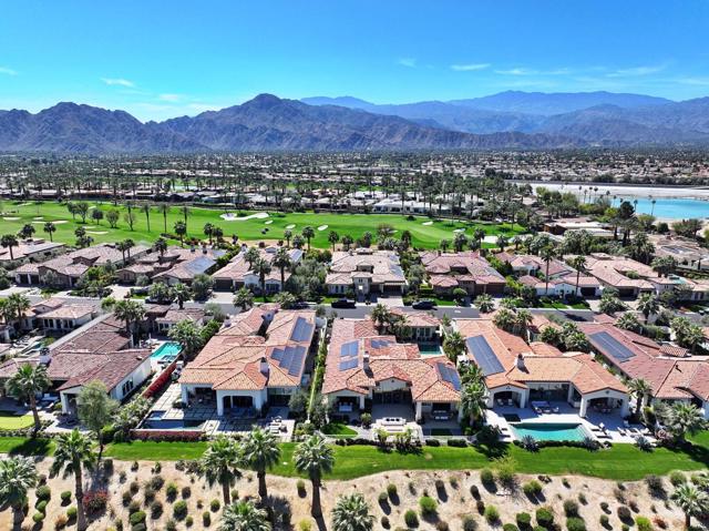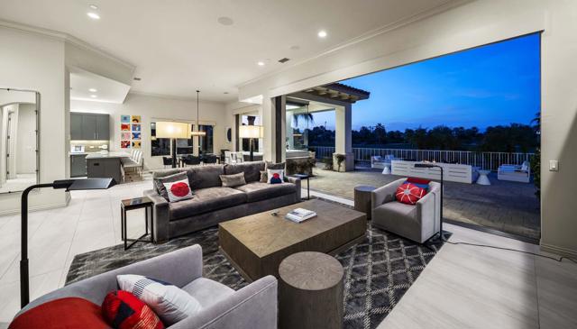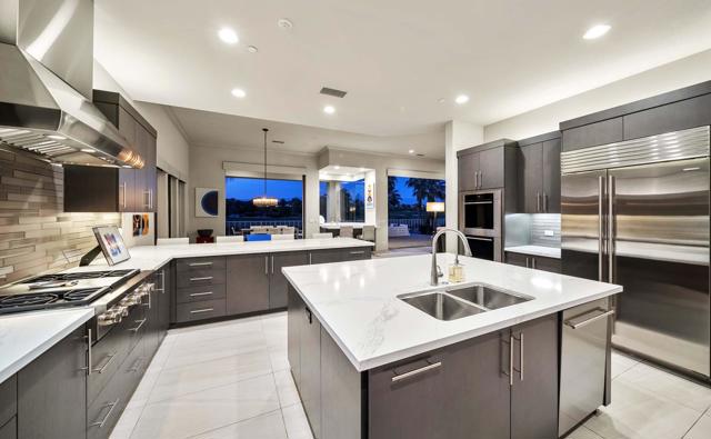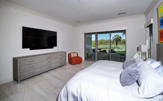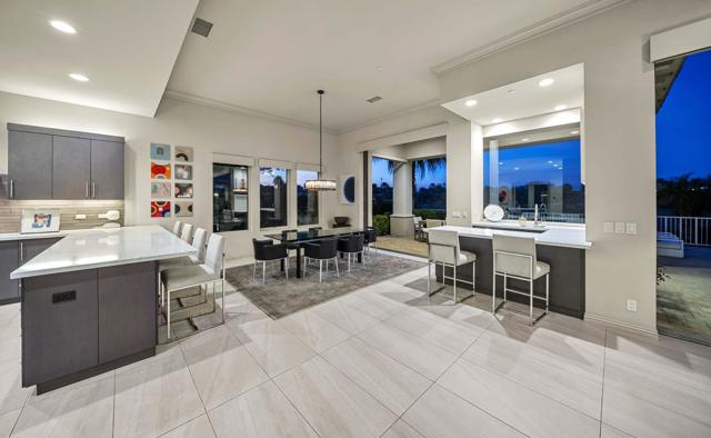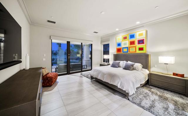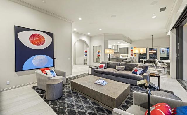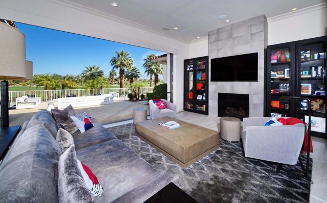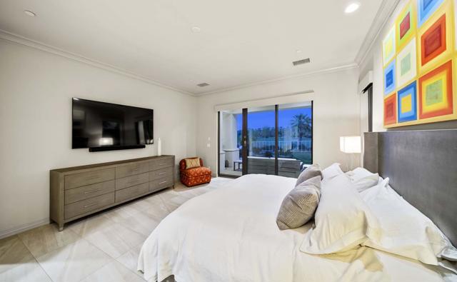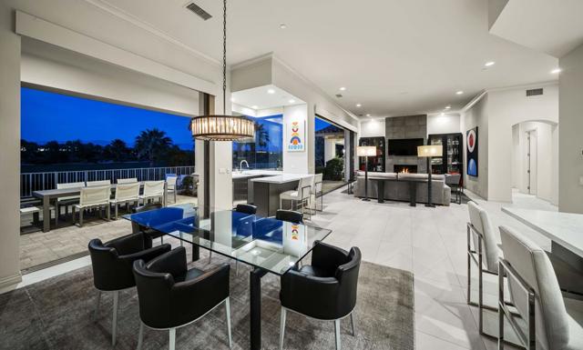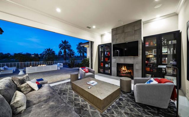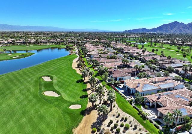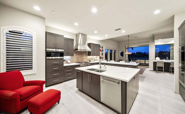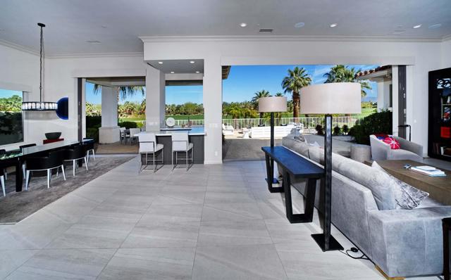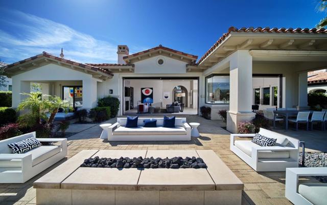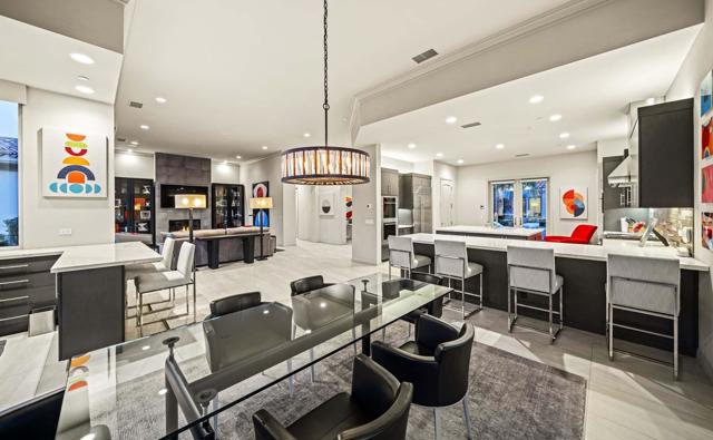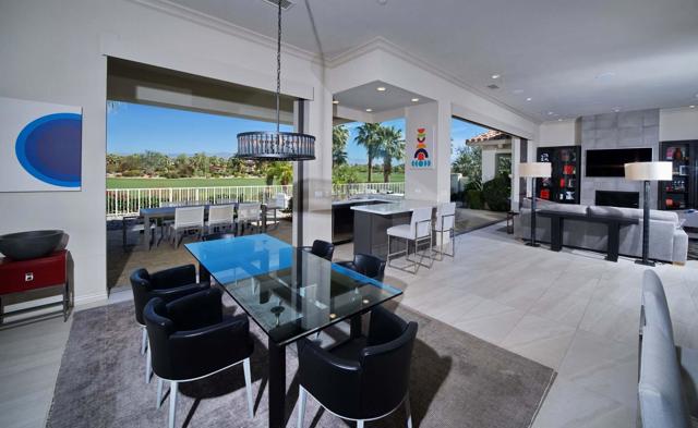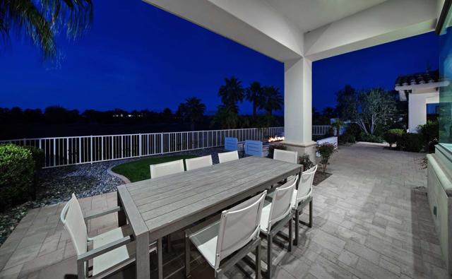 Perched along the 17th hole of the Jack Nicklaus Signature North Course at Toscana Country Club, this beautifully appointed residence captures sweeping views of the fairway, mountains, and tranquil desert surroundings. Thoughtfully enhanced with numerous upgrades and designer touches, the home offers the perfect blend of luxury, comfort, and effortless desert living.Inside, the light-filled open floor plan is designed for seamless indoor-outdoor living, with expansive pocket doors that open to the outdoor entertaining spaces. The great room flows effortlessly into the gourmet kitchen, featuring premium appliances, abundant storage, and thoughtful customizations including added electrical outlets within pantry and kitchen shelving, as well as discreet drawer outlets in the primary bath for appliances and grooming essentials. The home office showcases custom built-in shelving, creating a polished and functional workspace.The outdoor living areas are equally impressive, with upgraded landscaping designed for beauty and efficiency. Artificial turf, decorative rock, and enhanced plantings reduce water usage while maintaining a lush desert aesthetic. The backyard features a newer outdoor grill, newly-installed pavers for easy maneuverability, upgraded lighting along the walkway and exterior sconces, and a refreshing misting system by Modern Misting--ideal for enjoying warm desert evenings overlooking the course.The detached casita offers exceptional flexibility, complete with a California Closets Murphy bed and built-in office space, additional storage, and a sofa that converts to a queen bed--perfect for hosting guests in comfort and privacy. Additional upgrades include solar panels installed in 2018 for significantly reduced energy costs, a whole-house water purification system, Moen emergency water shutoff system to reduce insurance costs, Desert Window Treatments screens and shades, custom iron front door and side gate by Tremblay Iron Works, a dog fence, garage studio with half-split A/C, and freshly painted exterior in 2024.With high-end furnishings--many from Restoration Hardware--and a long list of thoughtful enhancements throughout, this exceptional golf course home offers refined style, modern convenience, and the ultimate Toscana lifestyle.