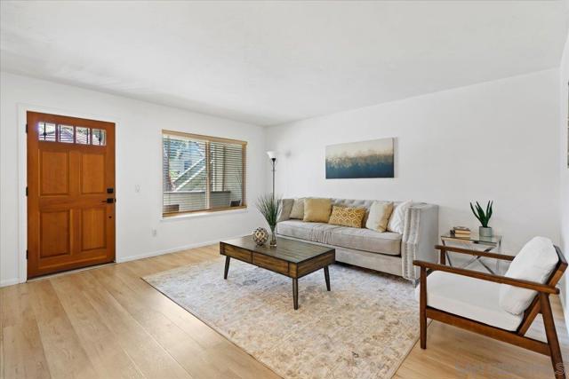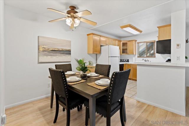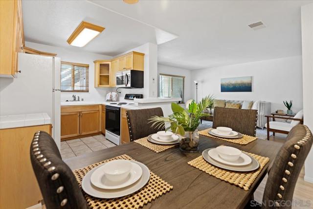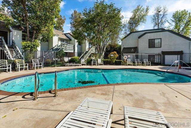Ideally situated within the park-like setting of the Hidden Glen community in desirable South Escondido, this turnkey two-bedroom residence offers effortless, easy living. A charming wood entry door and a private gated patio, perfect for morning coffee, casual outdoor dining, or relaxing while overlooking the sparkling pool and lush grassy grounds welcome you inside. The home features a freshly painted, open and airy floor plan enhanced by newer luxury vinyl plank flooring and seamless single-level living with no interior steps. The spacious living room flows naturally into a flexible dining area, ideal for everyday meals or hosting gatherings with friends and family. The well-designed kitchen offers abundant cabinetry and overlooks the living and dining spaces, creating a comfortable and connected atmosphere. Two generously sized bedrooms, including a primary suite with a walk-in closet and extensive shelving for storage, share an updated bathroom, while a convenient side-by-side laundry closet adds everyday practicality. On warm days, enjoy the refreshing community pool just steps away or relax indoors in air-conditioned comfort. The home also includes two nearby assigned parking spaces, one covered. Residents of Hidden Glen enjoy a quiet, beautifully maintained community with mature trees, green open spaces, and inviting poolside areas. Ideally located in a walkable South Escondido neighborhood, the home is just minutes from popular shops, restaurants, coffee houses, fitness studios, and grocery stores including Trader Joe’s and Vons, with easy access to major freeways this is a must see opportunity!