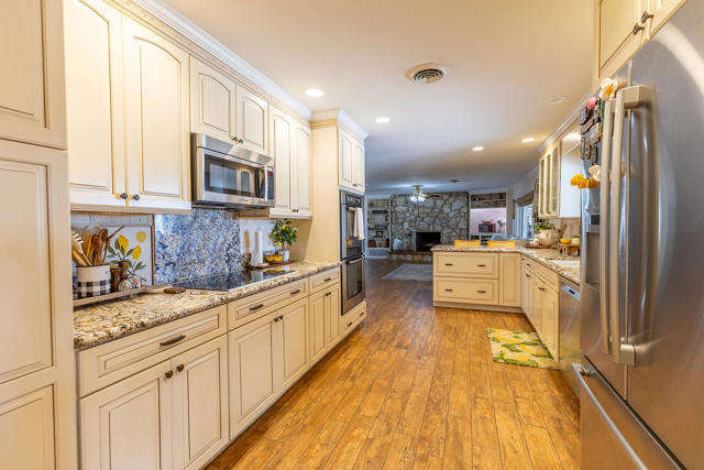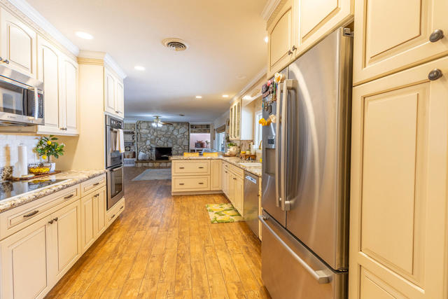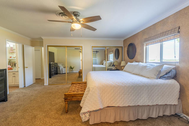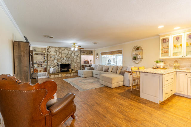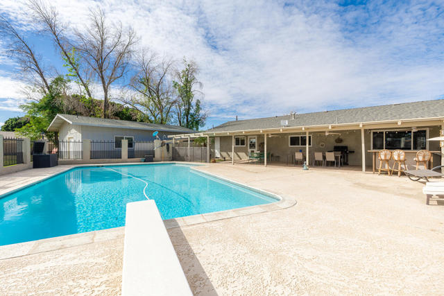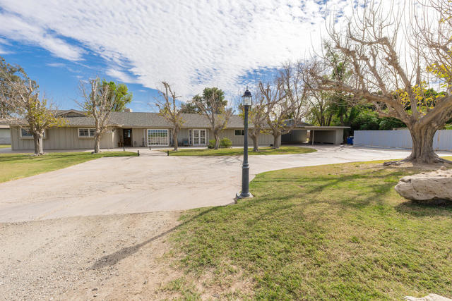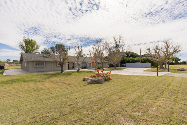 Country living with some of the best sunset views in the Valley. Situated on approximately 2.2 acres, this single-level ranch-style home offers 4 bedrooms, 3 bathrooms, and 3,045 sq ft with unobstructed west-facing views overlooking open fields and a nearby cattle arena.The home features a welcoming formal living room, formal dining area with built-in china cabinetry and bar, and a spacious layout designed to capture the surrounding views. A stunning stone fireplace anchors the living space, while the west wall of the home is framed with windows and French doors that open to the front of the home. The kitchen includes custom cabinetry, granite countertops, and double wall ovens.Outdoor amenities include a large in-ground pool recently re-plastered, full-length patio, and a fenced pool area for added security. The property also offers an attached two-car garage with extensive built-in storage, a separate carport, and a detached approximately 1,000 sq ft shop/office/multipurpose space, ideal for a workshop, gym, office, or additional storage.Recent improvements include an expanded 15x15 walk-in primary closet, new sprinkler system, water pumps, and upgraded network and camera system. Property is on septic with electric appliances and water heater.A rare opportunity to enjoy acreage, privacy, and open views while still being conveniently located in the Valley.