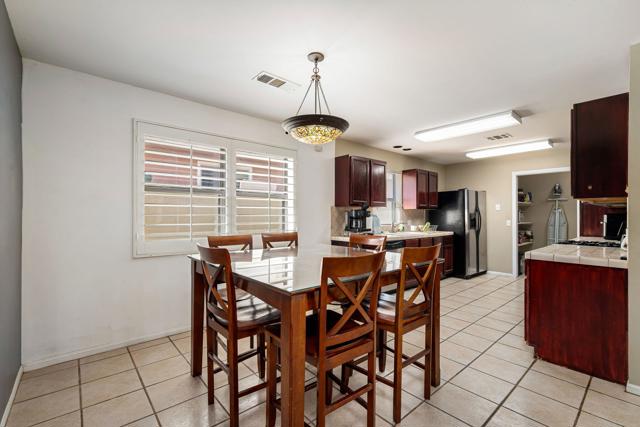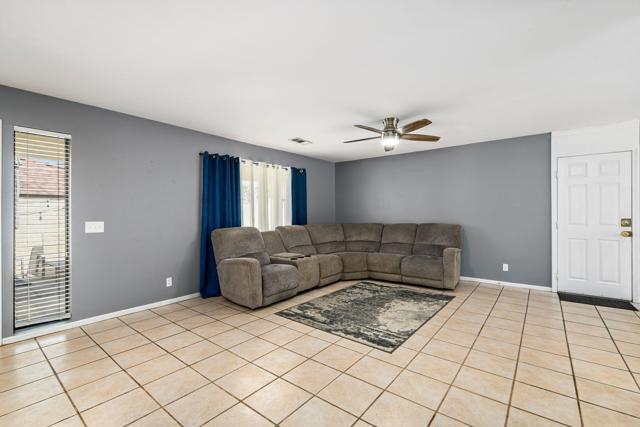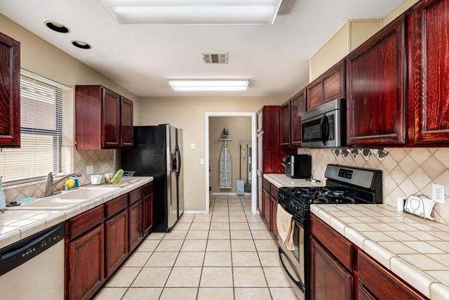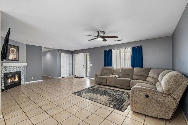 Nestled in the sought-after La Quinta Cove, this beautifully appointed single-family gem blends effortless comfort with captivating mountain views and walkable access to Old Town. Offering approximately 1,460 square feet of inviting living space, the home features three well-proportioned bedrooms, two bathrooms, and a spacious great room anchored by a tile-surround fireplace perfect for relaxed evenings. A newly installed front gate opens to a charming courtyard with a covered patio and fresh 2025 exterior paint, setting the tone for the warm, welcoming interiors. The kitchen shines with plantation shutters, tile countertops and backsplash, slide-out cabinetry, gas range, built-in microwave, and a new disposal--ideal for both everyday living and entertaining. Thoughtful upgrades include a 2017 A/C unit, 2025 water heater, updated garage door springs and pulleys, WiFi-enabled opener, and even an electric-vehicle charging connection. The primary suite offers a serene retreat with dual vanities and a generous walk-in closet, while the renovated 2022 guest bath ensures comfort and privacy for visitors. A wonderful blend of style, convenience, and desert charm awaits. Don't forget it is wired for an alarm system, and also has RainBird sprinkler control, also WiFi.