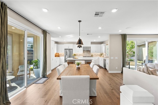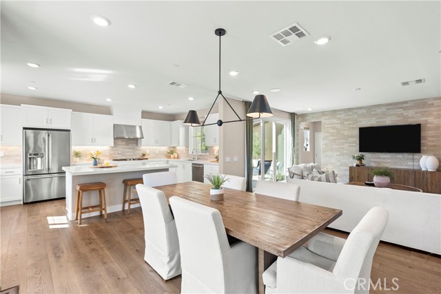 Ready to Move In 4 Bedrooms | 2.5 Bathrooms | Approx. 2,000+ Sq Ft Newer Fully Furnished Model Home with Premium Oversized Lot/Yard. Welcome to this beautifully maintained former model home located in the highly sought-after Solaire neighborhood of Five Point Valencia, one of Santa Clarita’s most vibrant and thoughtfully designed master-planned communities. Built in 2023 and showcasing professionally designed interiors, this exceptional residence offers modern style, bright open living spaces, and the rare opportunity to purchase a fully furnished home. All model home furniture and designer furnishings are included with the sale, excluding the seller’s personal items, making this an incredible turnkey opportunity. Step inside to an inviting open-concept floor plan where the kitchen, dining, and living areas flow seamlessly together, creating the perfect space for both everyday living and entertaining. The stylish kitchen features sleek quartz countertops, a large center island with seating, stainless steel appliances, and abundant cabinetry. Natural light fills the home, highlighting the professionally curated finishes and thoughtful design touches throughout. Upstairs, you’ll find four generously sized bedrooms including a private and relaxing primary suite complete with a spacious walk-in closet and a spa-inspired bathroom designed for comfort and convenience. Additional highlights include recessed lighting, central HVAC, an upstairs laundry room, and a direct-access two-car garage. The backyard features a premium oversized lot that is beautifully landscaped and perfect for entertaining! Living in Five Point Valencia means access to an incredible array of community amenities designed around connection, recreation, and outdoor living. Residents enjoy resort-style pools and spas, beautifully designed clubhouses, community gardens, playgrounds, scenic walking and biking trails, and numerous parks and open spaces throughout the community. The area is also home to Confluence Park, neighborhood gathering spaces, and planned retail, dining, and entertainment that continue to enhance the Five Point lifestyle. Ideally located near award-winning schools, shopping, restaurants, and just minutes from the 5 freeway, this fully furnished former model home offers the perfect combination of modern comfort, convenience, and resort-style community living in one of Valencia’s newest and most exciting neighborhoods.