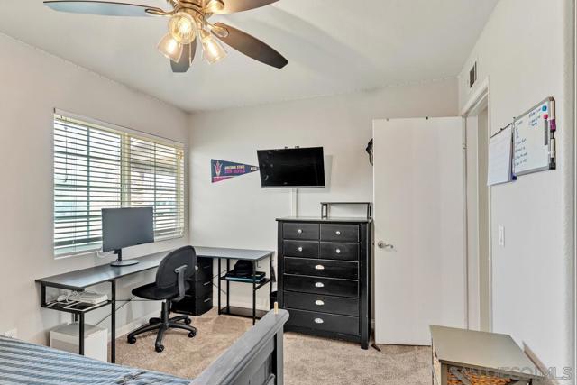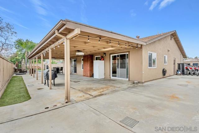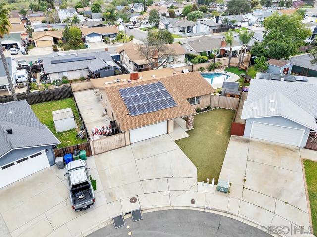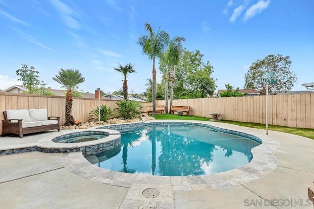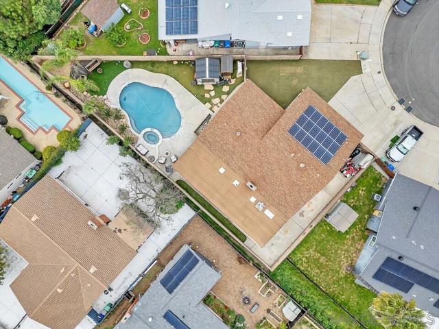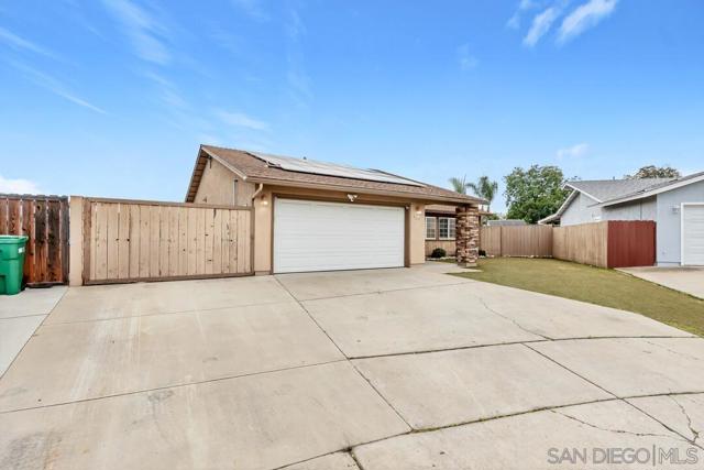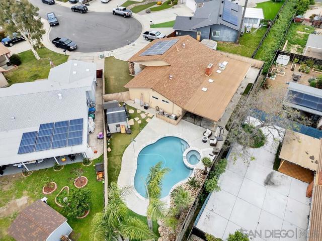 Tucked away on a quiet cul-de-sac in a desirable southwest Santee neighborhood, this charming 3-bedroom, 2-bath home offers a standout outdoor lifestyle with owned solar and an incredible backyard retreat. The backyard features a beautiful pool and jacuzzi, a long patio perfect for gatherings or outdoor dining, and plenty of space to enjoy Southern California living. A large gated side yard provides rare and valuable parking for a motorhome, trailer, boat, or other recreational toys, making this property ideal for those who need extra space for their lifestyle. Inside, the home offers a comfortable layout with a natural flow between living spaces. The kitchen features granite countertops, abundant cabinet storage, stainless steel appliances, and gas cooking, and opens to the living room where a cozy fireplace creates a welcoming place to gather. The primary bedroom includes a walk-in closet and a sliding glass door that leads directly to the backyard patio, creating a seamless indoor-outdoor connection. Located at the southwest end of Santee just off Fanita Drive, this home offers convenient access to shopping, dining, and commuter routes with quick connections to the 52 and 125 freeways. A wonderful opportunity to own a home with owned solar, a cul-de-sac location, and a backyard built for enjoying the best of SoCal living.