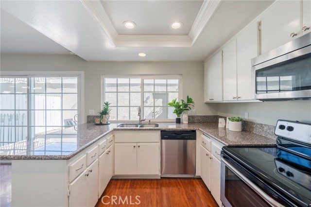 Welcome to this beautiful, refined two-story townhome in the desirable area of Deerfield in Irvine. It offers 3 bedrooms & 3 bathrooms in approximately 1,550 sf of thoughtfully designed living space, blending comfort, style, and convenience. Step inside to a light-filled interior with soaring vaulted ceilings that create an open and airy atmosphere. The elegant living room features classic plantation shutters and a cozy fireplace, offering the perfect setting for relaxing evenings or intimate gatherings. Fresh interior paint, wood-style flooring, new light fixtures and dual-pane windows enhance the home’s warm and polished aesthetic. The well-appointed kitchen is designed for both everyday living and entertaining, featuring granite countertops, abundant cabinetry, a new refrigerator and a charming breakfast nook where morning light pours in. Just beyond, a private patio retreat provides an ideal space for outdoor dining, gardening, or simply enjoying the California sunshine. The patio conveniently connects the home to the detached two-car garage with laundry hookups. Upstairs, the home offers an ensuite master bedroom with a fully renovated 3/4 bathroom. Two additional guest bedrooms share a full bathroom & boast amazing views of the Santa Ana Mountains Situated within the picturesque Fawn Glen community in the Deerfield neighborhood, residents enjoy a serene environment surrounded by mature landscaping, shaded walking paths, and exceptional amenities including five swimming pools, tennis courts, playgrounds, and access to a before-and-after-school service center. The home is served by the award-winning Irvine Unified School District, consistently ranked among the top school systems in California. There is easy access to the 5 and 405 freeways, great shopping at the Irvine Spectrum and South Coast Plaza as well as short drives to many museums in including the UCI Langston Institute and the Museum of California. Most importantly, this home presents an inviting opportunity to enjoy the best of Southern California living! Don’t miss this exceptional opportunity, schedule your showing today!