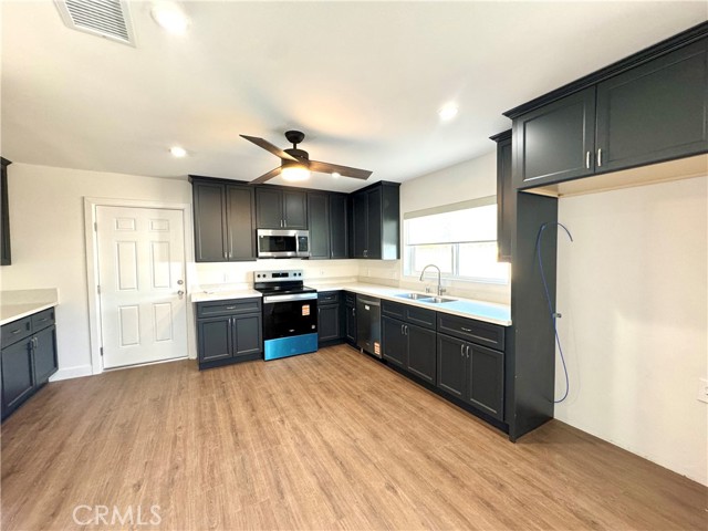 Discover modern, private, and convenient living in this newly constructed 3-bedroom, 2-bathroom house. This distinctive unit is situated behind a main residence in a desirable Tustin neighborhood. The home boasts an open-concept design with stylish amenities, including vinyl plank flooring, recessed lighting, and a mini-split AC/heating system with ceiling fans for year-round comfort. The kitchen is fully equipped with brand-new, stainless steel appliances and contemporary cabinetry. The layout is completed by a primary suite, two additional bedrooms, and a full shared bathroom. Convenience is key with a dedicated laundry room that includes hookups and a utility sink. The property also features a private two-car garage for secure parking and storage, and a private yard, perfect for Southern California outdoor relaxation. Schedule a showing today!