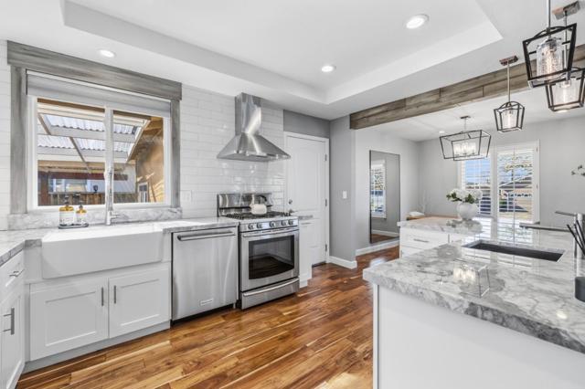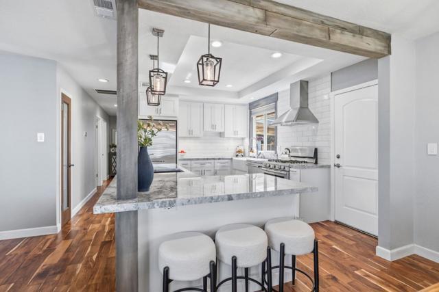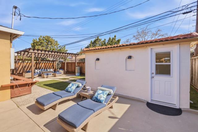 Light-filled 3-bed home with designer upgrades throughout, including kitchen with quartzite counters, custom cabinetry, premium appliances, and a spa-like bath with Italian tile and Grohe fixtures. Detached casita with private entry offers stylish space for guests, office, or bonus use. Enjoy hardwood floors, plantation shutters, curated lighting, high-efficiency HVAC, tankless water heater, owned solar, and a finished garage with laundry. Private backyard retreat with lighted pergola, outdoor bar and sink, stamped patio, and custom seating. Near Alum Rock Park, San Jose Country Club, and top Berryessa schools.