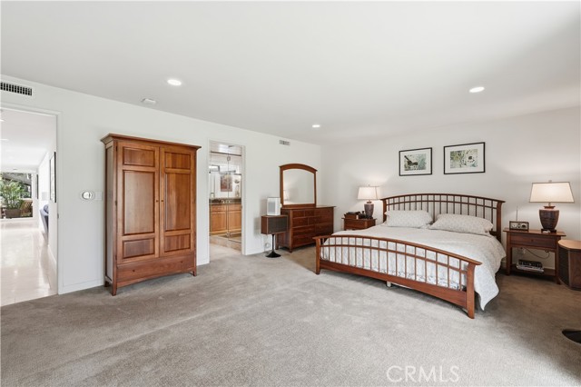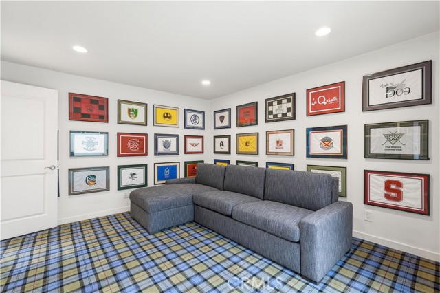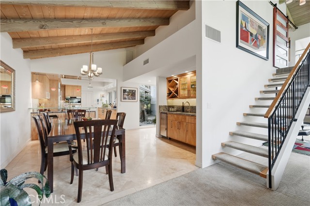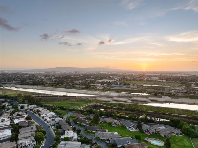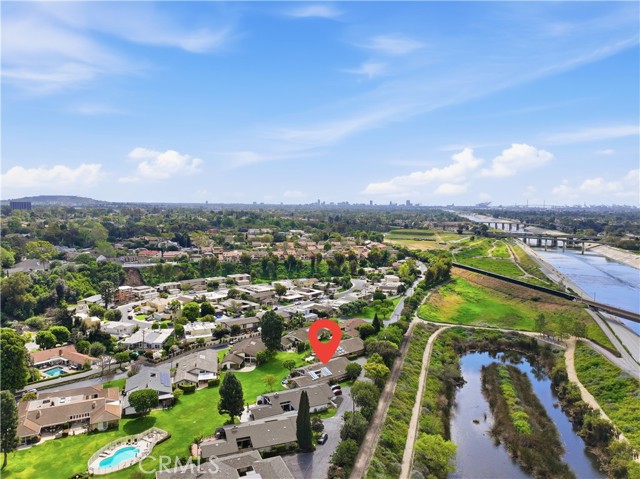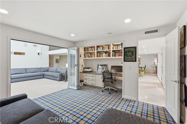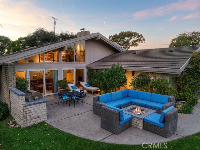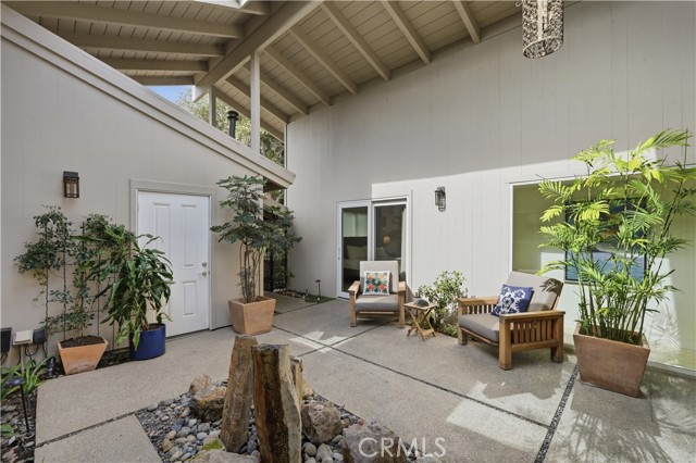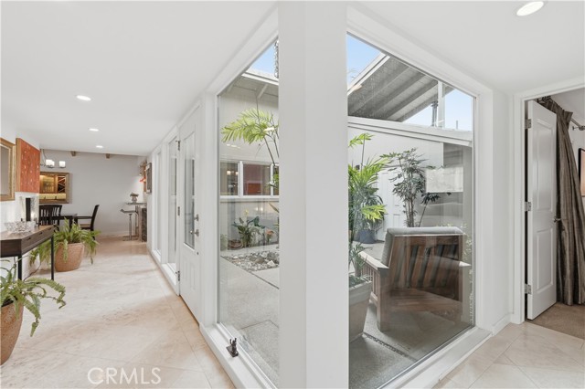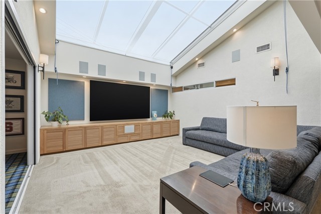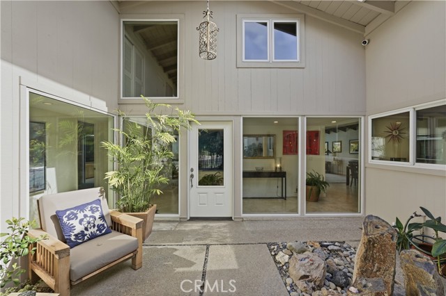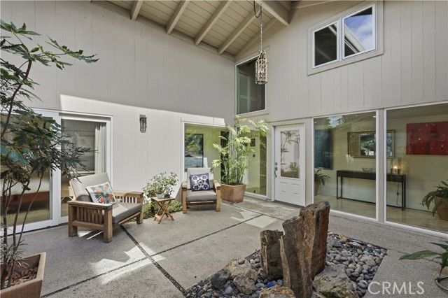 Tucked behind gates in the prestigious Virginia Country Club area of Los Cerritos, this stunning Mid-Century Modern retreat blends architectural character with thoughtful modern upgrades and golf course views. A private atrium welcomes you at the front entry, creating a tranquil first impression with fountains and greenery. The home offers a serene backdrop of lush grass, a community pool and in the distance the 14th fairway of Virginia Country Club, creating a rare sense of privacy and tranquility. Inside, walls of glass and multiple skylights flood the home with natural light, enhancing the open, airy design. The showpiece media room features a retractable roof, allowing you to open the space to the sky and enjoy the sound of birds and trees blowing in the wind - an extraordinary indoor-outdoor living experience. The gourmet kitchen is equipped with top-of-the-line appliances, sleek cabinetry and premium finishes, ideal for both everyday living and effortless entertaining. The living room shows off her fireplace and offers a warm and cozy retreat with sliding glass doors that open directly to the backyard, creating another indoor-outdoor setting perfect for relaxing evenings around your firepit or gatherings with friends at the built-in BBQ. A unique architectural highlight is the converted attic, thoughtfully transformed into an upstairs living space featuring an additional en-suite bedroom and bath. This level also includes a second viewing area overlooking the media room below, adding both flexibility and a striking architectural perspective. The 3082sqft floorplan boasts 3 bedrooms, 4 total bathrooms and a bonus room left to be used anyway you need it. Set in one of Long Beach's most sought-after neighborhoods near Virginia Country Club, this gated Mid-Century Modern beauty offers a rare blend of privacy, character and golf course living in the heart of Los Cerritos.