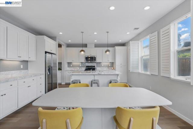 This beautifully upgraded 2,059-square-foot, 4-bedroom, 2.5-bathroom home, built in 2017, is nestled in one of Newark’s most desirable neighborhoods, offering both modern comfort and convenience. The open-concept layout features a remodeled kitchen with elegant marble countertops, sleek modern cabinetry, and premium stainless steel appliances—ideal for both entertaining and everyday living. A bright and spacious living area flows seamlessly, creating an inviting atmosphere. The tranquil primary suite includes a walk-in closet with custom shelving for optimal storage and organization, along with a private ensuite bath. Three additional bedrooms provide flexibility for family, guests, or a home office, while a bonus small office on the first floor offers a quiet workspace for remote work or study. Energy-efficient solar panels reduce utility costs, and the peaceful backyard provides a relaxing retreat. Minutes from Highway 84 and I-880, this home offers effortless commuting to Silicon Valley and beyond. Nearby shopping, dining, parks, and trails make this move-in-ready home a fantastic opportunity.