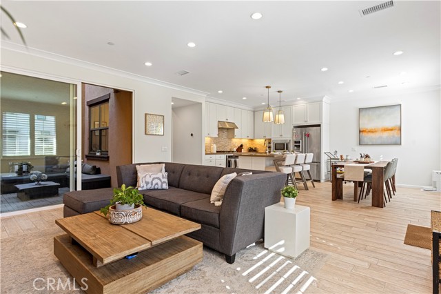 Welcome to this absolutely stunning and rarely available Entrata Plan 2 condominium in the prestigious Orchard Hills community of Irvine. Perfectly situated along the picturesque greenbelt, this beautifully maintained 2-bedroom, 2.5-bath residence with a tech loft offers a unique and highly desirable layout with no neighbors above or below, providing exceptional privacy and comfort. As you step inside, you are greeted by a bright and inviting open-concept great room featuring elegant wood-like tile flooring and plantation shutters, creating a warm and sophisticated atmosphere. The thoughtfully designed kitchen is the heart of the home, complete with a spacious center island, upgraded quartz countertops, abundant cabinetry, custom decorative backsplash, and premium stainless-steel appliances, all highlighted by two stylish pendant lights. Step outside to the private outdoor atrium, a peaceful retreat perfect for weekend BBQs, morning coffee, or intimate evening gatherings under the California sky. Upstairs, you’ll find a generous tech loft, ideal for a home office or study area, along with two spacious en-suite bedrooms and a conveniently located individual laundry closet. The luxurious primary suite offers French doors that open to a large private balcony, where you can enjoy breathtaking mountain and greenbelt views. The spa-inspired primary bathroom features dual vanities, a soaking tub, a separate shower, and a large walk-in closet. Additional highlights include an oversized 2.5-car garage, offering incredible flexibility for a home gym, workshop, or additional storage. Residents enjoy access to resort-style community amenities, including two pools, a clubhouse, playground, and sports courts, all within the highly acclaimed Irvine Unified School District, serving Canyon View Elementary and Northwood High School. As you walk through this home, you’ll quickly notice the many thoughtful details and meticulous care throughout, reflecting the homeowner’s dedication to creating a warm, welcoming, and well-loved living space. This beautiful home truly offers the perfect blend of comfort, style, and location—a rare opportunity that won’t last long.