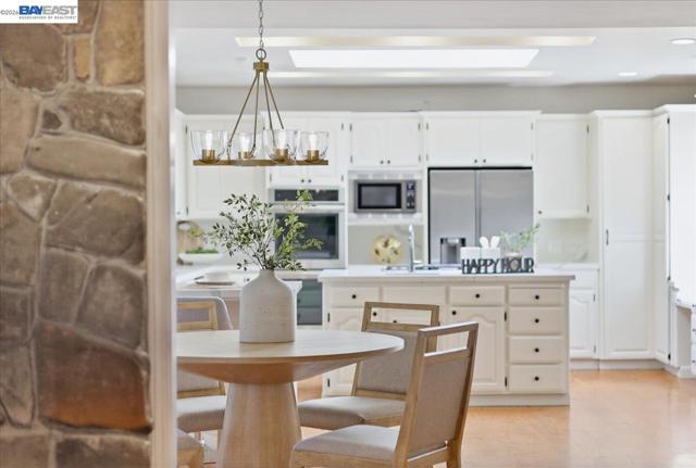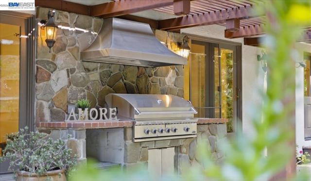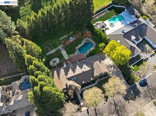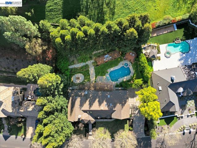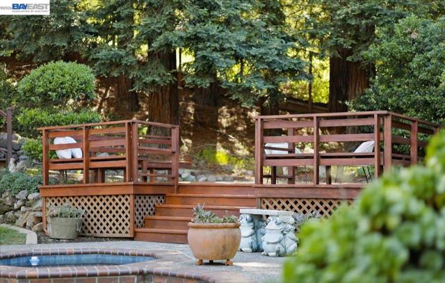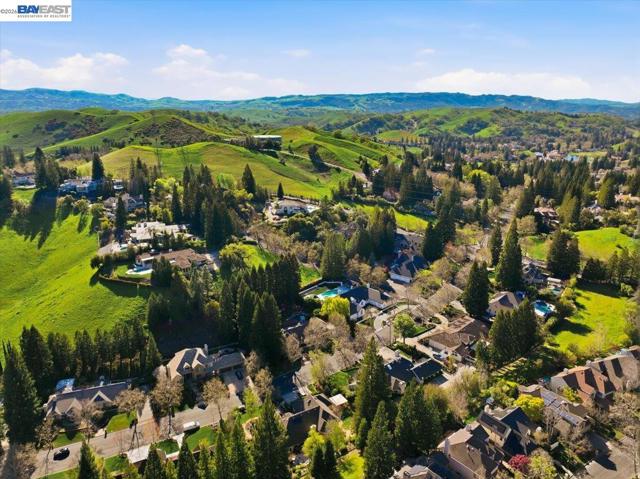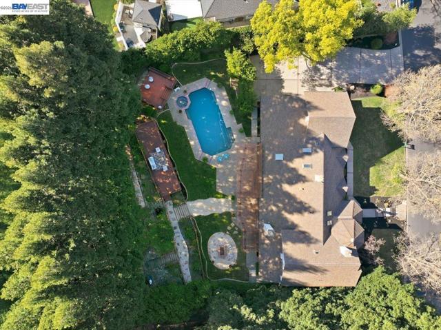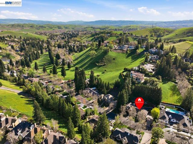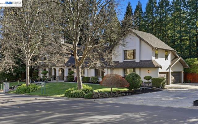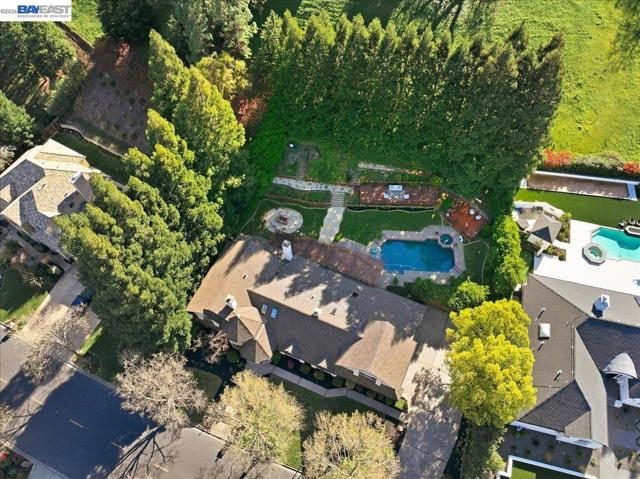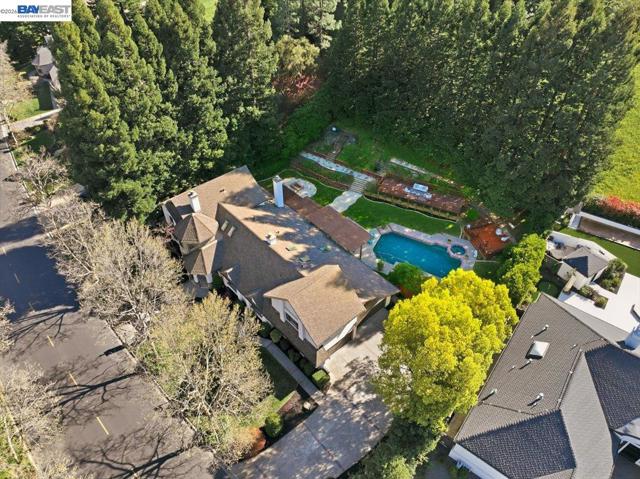 Situated on over a half-acre lot and surrounded by towering redwoods, this exceptional Blackhawk home offers a resort-style backyard with a pool and spa, multiple patios and decks, lush lawn and gardens, and beautiful hillside views. The home features fresh interior paint, high ceilings, hardwood floors, formal living and dining rooms, and a private office with built-ins. The inviting family room includes a gas fireplace, built-in bar, and French doors that open to the backyard. The chef’s kitchen showcases white cabinetry, quartz countertops, stainless steel appliances, and a center island, seamlessly connecting to the family room and overlooking the yard. The flexible floor plan offers three ensuite bedrooms on the main level and two spacious primary suites upstairs. The main retreat features a sitting area, two-way fireplace, walk-in closet, and spa-like bath. The second suite includes a private staircase, sitting area, walk-in closet, and full bath. Enjoy the exceptional amenities of Blackhawk, including golf courses, clubhouse, fitness center, tennis courts, parks, scenic trails, Blackhawk Plaza, and top-rated SRV schools.