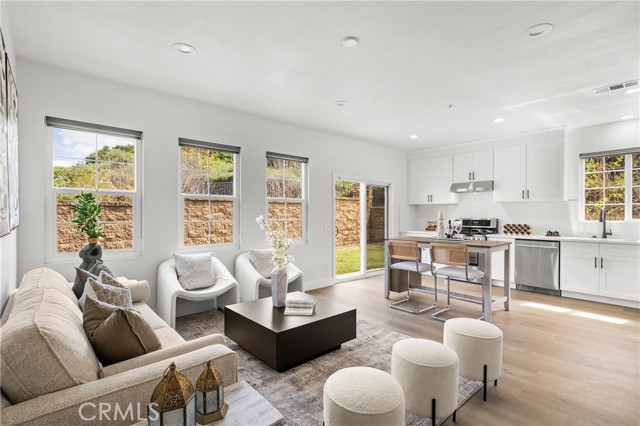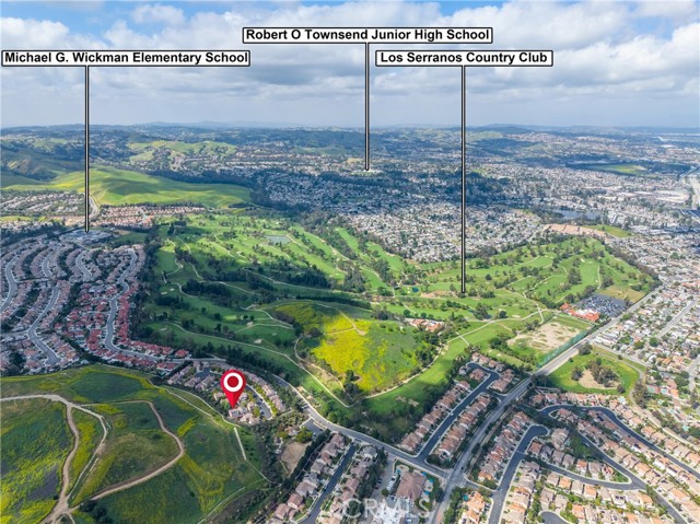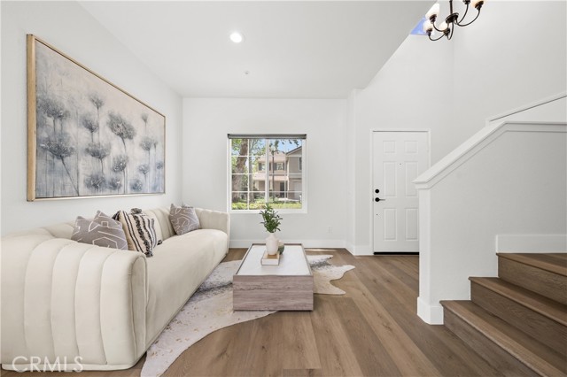 A beautifully renovated suburban home located in a gated community, showcasing a premium Cul-De-Sac lot with an elevated position. The exterior features a modern design with tastefully landscaped front and back yards, including artificial grass for easy maintenance. Inside, the home boasts brand new upgrades such as high-end flooring, fresh interior paint, a new kitchen with stylish cabinetry and countertops, new bathrooms with elegant bathtubs, and modern lighting. It opens up into the family and dining room area with the fireplace. It has large windows to let the light in making it nice and bright.The first floor features a bedroom and a full bathroom, offering both convenience and functionality. The property also includes solar panels. Located near the Los Serranos Country Club golf course, Shopping centers, Restaurants, Award winning high score school district, Very good deal! A must see, it won’t last long!!!