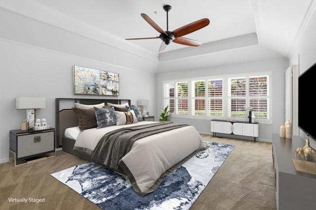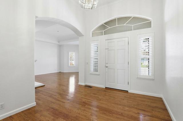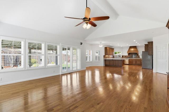 Welcome to luxury living in the highly sought-after Llagas Creek Estates. This gorgeous 4 bed, 2.5 bath home offers approximately 3,100 sq ft of beautifully designed living space on an expansive 0.27-acre lot, combining elegance, comfort, and modern efficiency. Step inside to find stunning hardwood floors, vaulted and high ceiling architecture that create a bright, airy atmosphere throughout the open-concept floor plan. The chef-inspired kitchen is perfect for entertaining and everyday living, with custom cabinetry and stainless-steel appliances. Additional highlights include central A/C, a whole house fan, and fully paid-off solar, providing year-round comfort and energy efficiency. Car enthusiasts or hobbyists will appreciate the temperature-controlled 3-car garage, offering versatility and extra space. The beautifully landscaped backyard is designed for both relaxation and low maintenance, featuring mature landscaping and premium turf, creating a private outdoor retreat perfect for gatherings or quiet evenings at home. This exceptional property blends space, style, and sustainability in one of the areas most prestigious communities.
