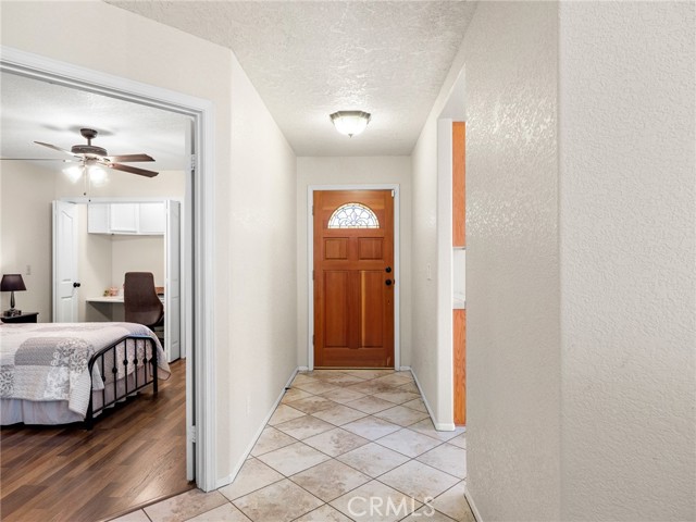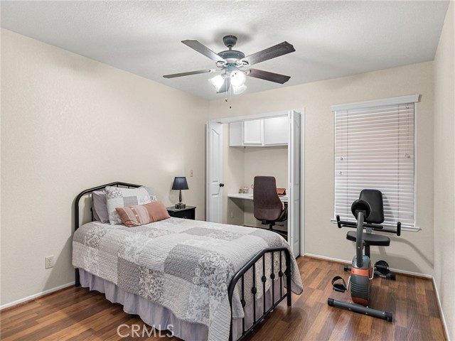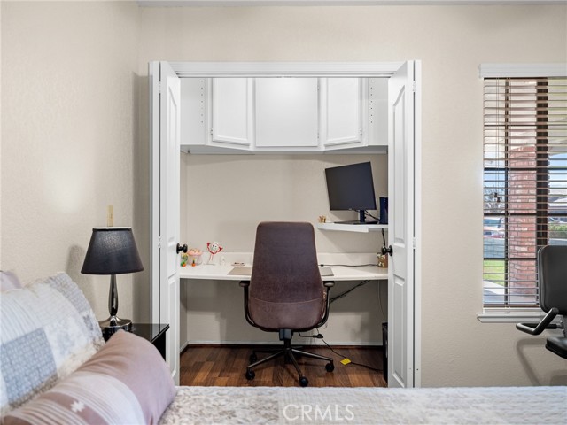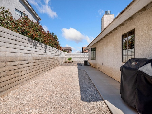 PERFECT PACKAGE RIGHT HERE! Quiet cul-de-sac location, no thru traffic! Beautiful, pristine 3-bedroom, 2-bathroom home that is ultra-clean inside and out and shows true pride of ownership in every detail. This home features solid surface flooring throughout with tile and LVP for easy maintenance & a modern appearance. The spacious kitchen offers plenty of cabinets & counter space, a spacious eat-in dining area, a walk-in pantry, and a breakfast bar that opens onto the living room & sets up this space for ideal entertaining & family gatherings. The living room is highlighted by a floor-to-ceiling custom patterned brick fireplace with hearth, creating a warm and inviting focal point. Vaulted ceilings give the room an even more spacious feel. Plenty of windows allow light into the home & add to the bright, open feel. The primary suite is generously sized and has an extra deep window seat area. Double door wide access walk in closet. The adjacent well-appointed bathroom has an extended dual-vessel basin vanity, soaking tub, and walk-in shower with custom tile. Bedrooms 2 and 3 are bright and spacious, with one bedroom featuring a custom open closet workspace complete with desk area, shelving, cabinets, and lighting—perfect for a home office or study area. There are ceiling fans throughout the home. Reverse osmosis water system guarantees great drinking water quality. Additional highlights include an indoor laundry room with cabinets, folding area, and extra storage closet. Adjacent doorway leads to the fully finished & equally immaculate garage with newer garage door opener. Notice the extra concrete parking area at side of driveway. Step outside to enjoy a landscaped front yard with manicured shrubs, auto sprinklers & a block wall fenced backyard with the walls extending out on each side property line. Iron gates at each side of house. There are concrete walkways around the entire perimeter of the home. The backyard is beautifully finished with hardscape, a cozy firepit, and an extended covered side patio with gas hookup for BBQ—ideal for relaxing or hosting gatherings. A welcoming front porch adds even more charm to this exceptional property.