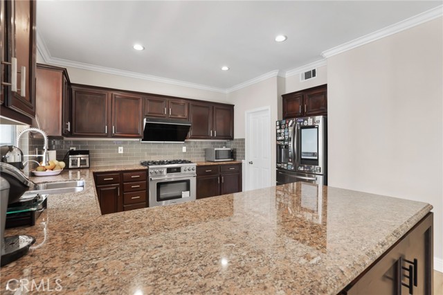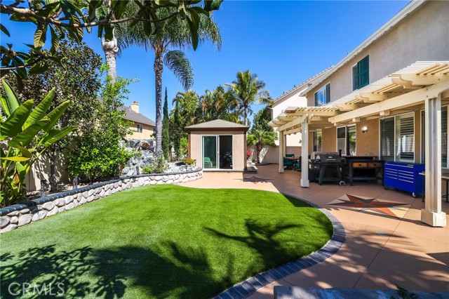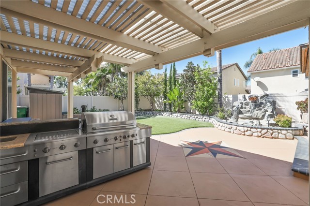 This beautifully upgraded home in the gated Oak Creek community offers a rare combination of meticulous detail and resort-style living. From the custom waterfall in the oversized backyard to the premium interior finishes, every inch of this property is designed for comfort and entertaining. Curb Appeal & Massive Parking * Exceptional Parking: Features a rare 3-car garage with new garage doors and epoxy * Designer Landscaping: The front yard is adorned with natural flagstone, lighted dual pilasters, and maintenance-free faux turf for year-round green. Gourmet Kitchen & Living Spaces * Chef’s Kitchen: Boasts solid granite countertops, a full mosaic tile backsplash, a peninsula island, and a walk-in pantry. * New 36” Professional Range * High-End Finishes: Interior upgrades include crown moldings, designer paint and wood flooring. * Modern Comforts: Equipped with custom media built-ins, multiple ceiling fans, and a newer water heater for efficiency. Luxurious Master Retreat * Walk in Custom Shower * Refined Cabinetry: Features refinished cabinetry and custom lighting to create a high-end atmosphere. Entertainer’s Backyard Paradise * Oversized Lot: One of the largest yards in the neighborhood, featuring a custom real-stone waterfall and high end BBQ. * Outdoor Recreation: Professional hardscape, a large patio cover, and mature palm trees for privacy. * Low Maintenance: Secured with upgraded vinyl fencing for durability and style. Two Storage units * Enclosed Gazebo Fun Room fully finished? New wood custom Shutters all windows Installed 240V TESLA CHARGER Prime Gated Location * Top-Rated Schools: A short walk to the award-winning Oak Creek Elementary (Irvine Unified School District). * Resort Amenities: Immediate access to three community pools, tennis, volleyball, and basketball courts, plus multiple tot lots. * Local Conveniences: Walking distance to various Oak Creek dining and shopping venues.