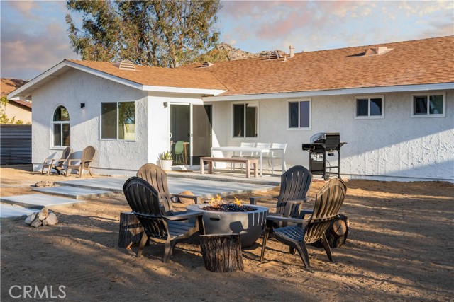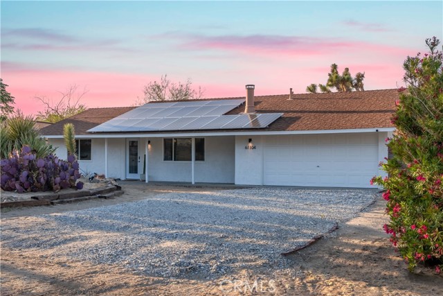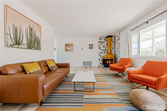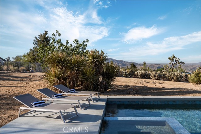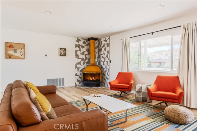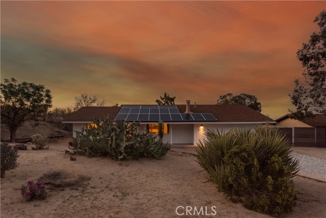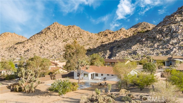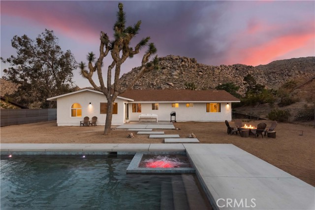 Set against the rugged hills and open desert skies of Joshua Tree, this updated home offers a comfortable high desert setting with space to relax and enjoy the outdoors. The backyard is designed for desert living, featuring a private pool and spa, a spacious concrete deck for lounging, and a fire pit area that’s perfect for evenings under the stars. The surrounding landscape and nearby boulder hills create a scenic backdrop that feels distinctly Joshua Tree. Inside, the home has been refreshed with a clean, modern aesthetic. The remodeled kitchen features stone counters, stainless steel appliances, and generous cabinetry, opening to the dining area with large windows and sliding doors that connect easily to the backyard patio. The living room centers around a distinctive freestanding fireplace with a geometric tile surround, creating a comfortable focal point for the space. Additional highlights include recessed lighting, updated flooring, and owned solar. The layout flows easily between indoor and outdoor spaces, making the home well suited for everyday living, entertaining, or weekend escapes. Located in the unincorporated community of Joshua Tree, the property is within easy reach of Joshua Tree National Park, the shops and restaurants of Joshua Tree Village, and the weekly farmers market. Pioneertown and Pappy & Harriet’s are also a short drive away, along with hiking trails and open desert landscapes throughout the Morongo Basin.