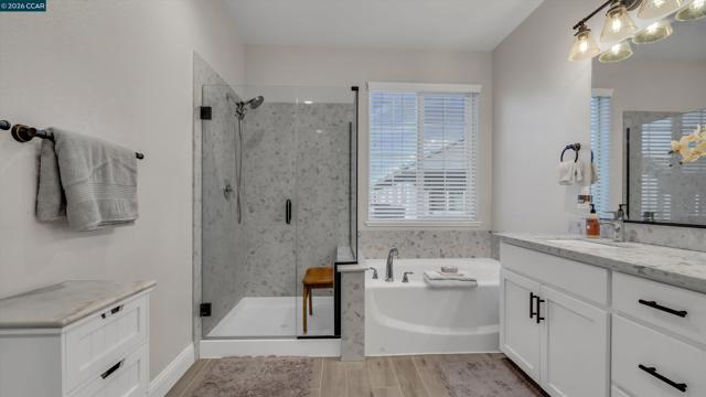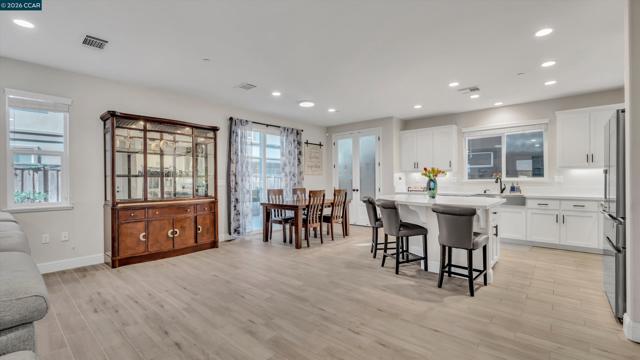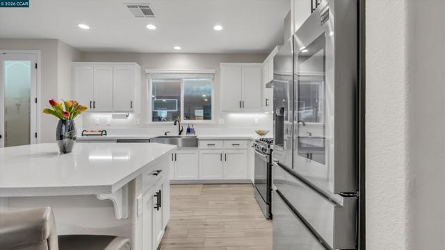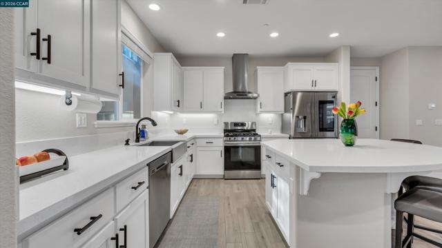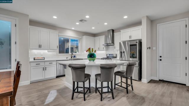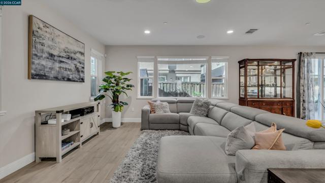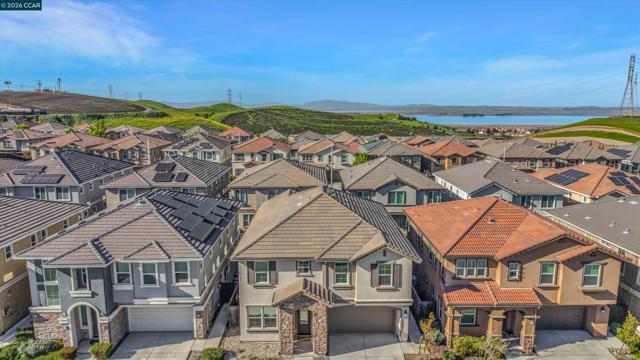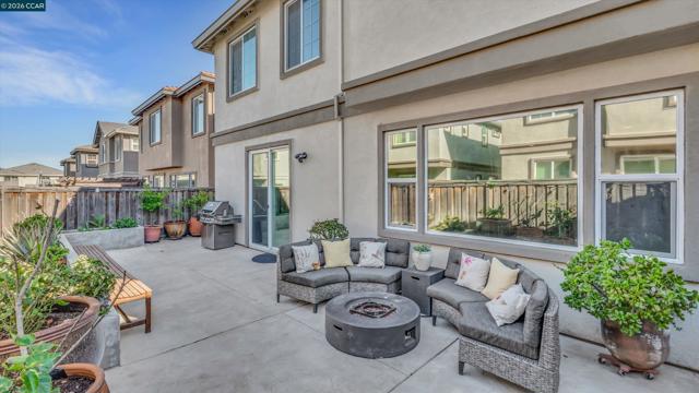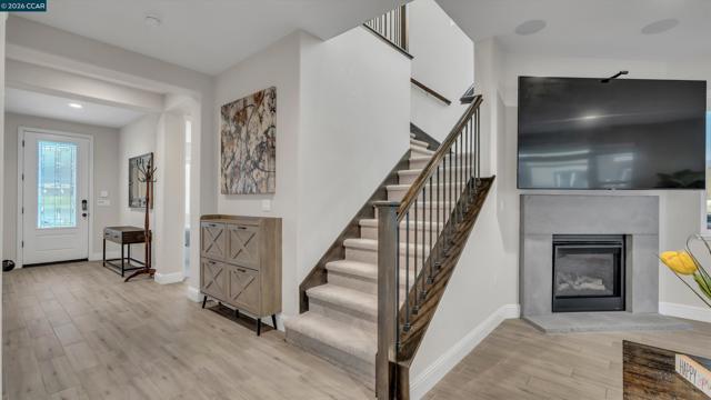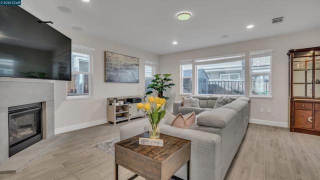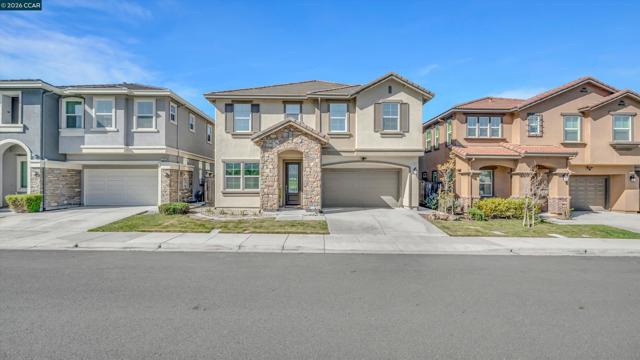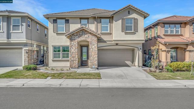 Welcome to a home where modern luxury, thoughtful design, and effortless California living come together in the sought-after Positano at San Marco community. Built in 2019, this stunning 5-bedroom, 3-bath home offers approximately 2,770 sq ft of beautifully designed living space with stylish upgrades throughout. The main level features a gourmet kitchen with quartz countertops, a large island, Samsung stainless steel appliances, shaker cabinetry, and a pantry with etched glass doors. The kitchen opens to a spacious family room with a cozy fireplace and elegant traverstone surround—wonderful for everyday living and entertaining. A bedroom and full bath on the first floor offer flexibility for guests. The low-maintenance backyard features a patio for gatherings, a cement succulent planter, and a gas stub for BBQs. Upstairs includes a versatile bonus room, convenient laundry room, and a luxurious primary retreat with a marble bath, dual vanities, and custom walk-in closet, plus three additional bedrooms and a full bath. A whole house fan helps keep the home cool and energy-efficient during warm summer evenings. Ideally located near parks, Hwy 4, BART, shopping, and dining.