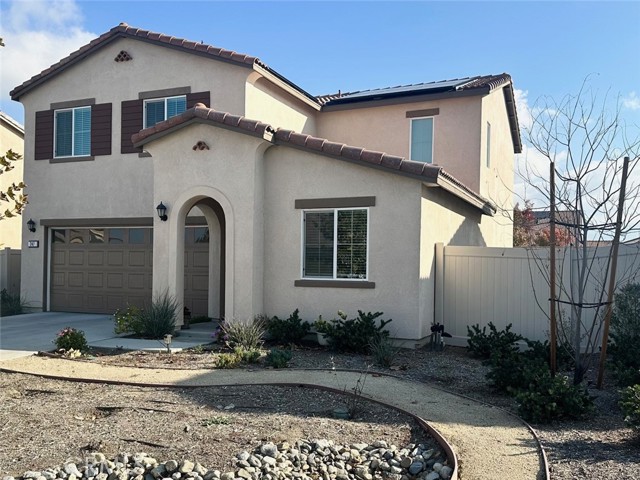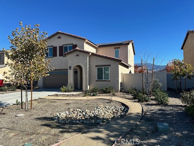 Beautiful VIEWS home is almost new! Convenient to schools, including San Jacinto College, stores, restaurants, movie theater, Soboba Casino Resort and more. The home is on a spacious lot and features four bedrooms and three full bathrooms. Spacious open concept living areas with plenty of natural sunlight, LVP flooring downstairs. Plenty of room for a full-sized dining room table. The kitchen features a walk-in pantry, granite counters, stainless steel appliances, including the refrigerator, and a nice sized kitchen island that includes the breakfast bar counter for casual dining. Convenient for guests, or a home office, there is a downstairs bedroom and full bath! Upstairs features the laundry room, a spacious primary room with beautiful ensuite and large walk-in closet, plus two additional bedrooms. Full disclosure - solar is currently under review with builder in need of repair.