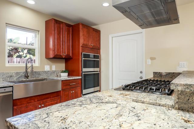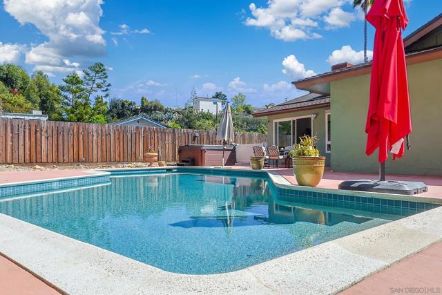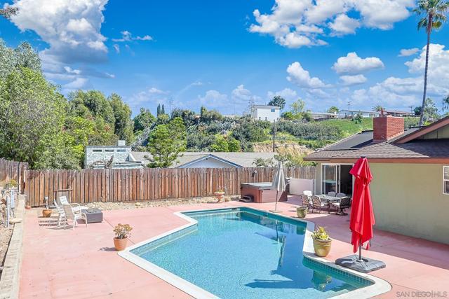 Staged, vacant, and easy to show. Move-in ready 4 bedroom, 2 bathroom single story home on a desirable cul-de-sac featuring a resurfaced saltwater pool and two fully paid solar systems, one serving the home and the other dedicated to the heated pool. Bright, inviting living spaces are filled with natural light and designed for comfortable everyday living and effortless entertaining. The remodeled kitchen offers modern finishes and newer appliances, including an oven, microwave, and dishwasher purchased within the past year. Additional highlights include red oak wood flooring, security cameras, a full alarm system, and a roof with a lifetime warranty. The private backyard is ideal for California indoor-outdoor living, with a spacious concrete pool deck, gas fire pit, and recently resurfaced saltwater pool, perfect for relaxing or entertaining. Additional upgrades include EV charger hookups and wiring for a future hot tub. Conveniently located near San Diego State University, parks, shopping, dining, and major freeways, this home offers comfort, efficiency, and long-term flexibility. The expansive lot also offers ADU potential, creating opportunities for future expansion, multigenerational living, or investment potential. Buyer to verify with city.