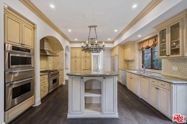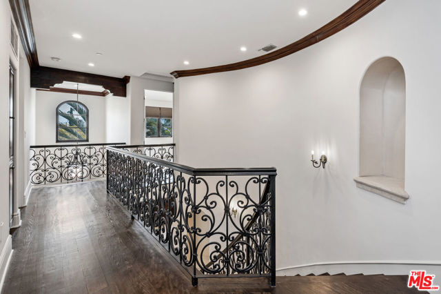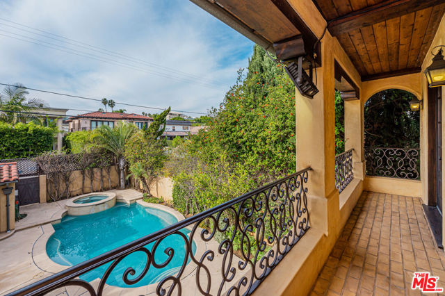 Exceptional lease opportunity on prestigious North Palm Drive in Beverly Hills. This elegant Mediterranean residence which was built in 2005 offers 5 bedroom & 7 bathrooms at approximately 4,565 sq. ft. of sophisticated living space with beautiful scale, timeless finishes, and seamless indoor-outdoor flow. Rich dark wood floors, custom wrought-iron accents, and graciously proportioned interiors create a warm yet refined atmosphere throughout. At the heart of the home is a large chef's kitchen with a generous center island and top-of-the-line appliances including a Wolf range, Sub-Zero refrigerator, and 2 Miele dishwashers, designed to accommodate both everyday comfort and elevated entertaining. The upper level includes generously sized bedroom retreats, refined architectural details, and a stunning custom walk-in closet with extensive built-ins. Outside, the private backyard oasis showcases an inviting pool and spa, expansive stone patio, and mature landscaping that creates a serene, resort-like setting. Complete with gated access and an unbeatable Beverly Hills location near world-class shopping and dining, this residence offers privacy, style, and convenience in equal measure.