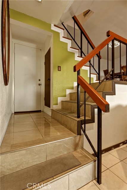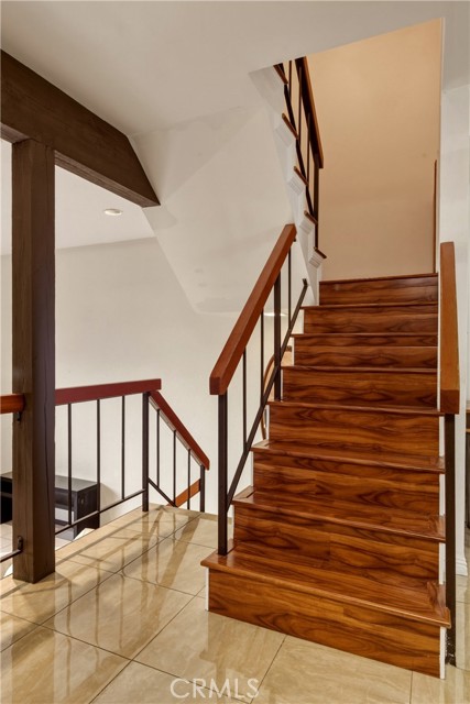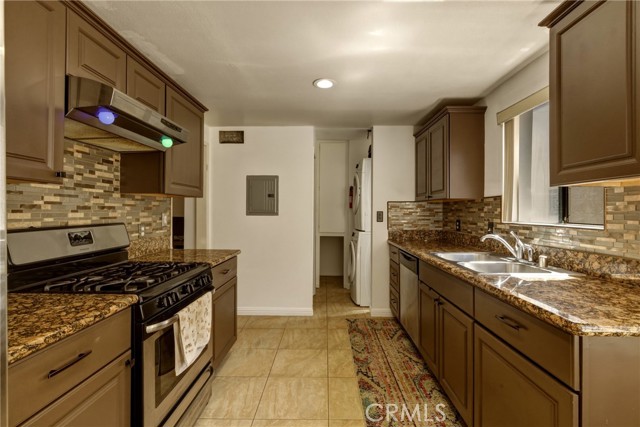 Welcome Home! This beautiful and spacious tri-level condo with attached 2-car garage is located in a gated community. Conveniently situated near freeways for an easy commute. Step into a rare 1,455 square foot of living space, which is in move-in condition. You will find a complementary blend of tile and laminate flooring throughout. The living room, which is on the first floor, has high ceilings with a gorgeous fireplace and direct access to your private patio. The second floor includes the dining room, office nook, kitchen, guest bathroom, and laundry area. The dining area is spacious enough to sit the whole family plus guests, and comes with a chandelier. The family's cook is going to appreciate the recessed lighting, abundant cabinets, granite countertops, and complementary backsplash. The kitchen also comes with a stainless steel dishwasher and hood range, and has enough space for a breakfast nook. Next to the kitchen is the laundry area with washer and dryer hookups. The 2 bedrooms, each with en-suite bathrooms, are located on the third floor. Both bedrooms are spacious and come with ample closet space. The primary bedroom, which also comes with a large walk-in closet, has vaulted ceilings and enough space for all of your furniture. The primary bathroom has a dual sink, a gorgeous stone shower, and a wash closet. The second bathroom upstairs has a granite counter and a shower with a bathtub. The attached 2-car garage is spacious and has a very rare and massive private storage room. Comes with central air & heat for year-round comfort. The community offers a pool and a jacuzzi for entertainment.