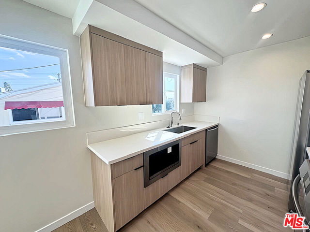 Stunning, NEWLY RENOVATED, TOP FLOOR 1BR, 1Bth a few miles from the beach! Sturdy vinyl plank floors throughout the unit! The spacious main living area is filled with natural light from several windows. BRAND NEW modern kitchen appliances! In unit washer/dryer. The bedroom is filled with natural light and has ample closet space. There are also additional built ins the in adjacent hallway. Oversized bathroom with plenty of storage and a tub/shower combo. One garage parking space included. Small pets ok (pet fee required).This spacious unit is part of a four unit boutique complex a few minutes from the Redondo Beach Pier and numerous top rated restaurants. Only 20 minutes to LAX! Easy access to major freeways and the South Bay's world class beaches. Call/text Francisco to schedule a tour. DO NOT CALL THE LISTING AGENT OR THE MANAGEMENT OFFICE. (UNIT IS VIRTUALLY STAGED, WILL BE DELIVERED VACANT).