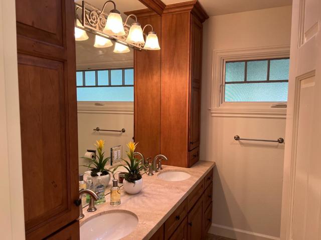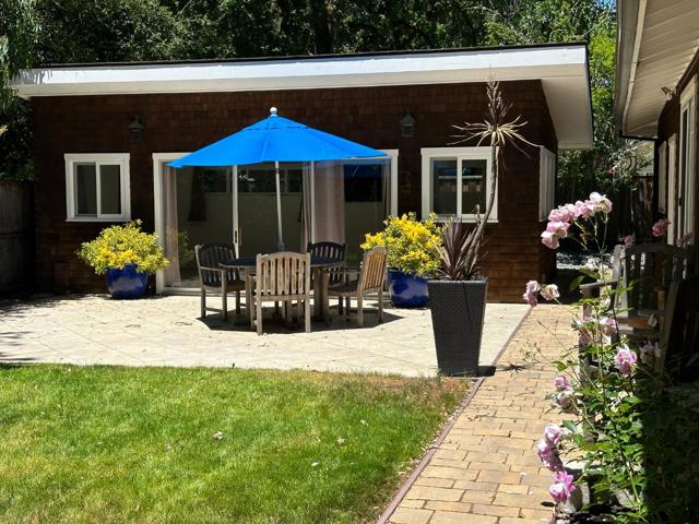 Nestled on a quiet tree-lined cul-de-sac this charming Craftsman-inspired single-story home sits on a level 13,746 sq ft lot in a highly desirable Central Woodside location-just a short stroll to the Village. The remodeled 3 bedroom 2 bath residence features hickory hardwood & stone flooring throughout. Vaulted ceilings & French doors create a bright open living & dining area filled with natural light. A wood-burning fireplace/gas starter serves as a warm focal point of the living space. The carefully designed kitchen showcases custom white maple cabinetry granite countertops & stainless steel appliances all overlooking an inviting front porch. Both bathrooms feature custom cabinetry & countertops while the primary bath is enhanced with marble-lined walls surrounding the bathtub & shower. The spacious primary bedroom offers generous closet space & sliding glass doors that open to a private porch & backyard. Adding exceptional flexibility a detached cabana (approx 365 sq ft) expands the living & entertaining space-ideal for home office, art studio, exercise room or meditation retreat. The beautifully landscaped grounds feature native plantings, stone porch, brick walkways & a grassy rear yard. 2-car attached garage acclaimed Woodside schools & convenient access to 280.