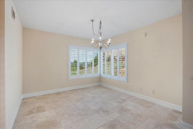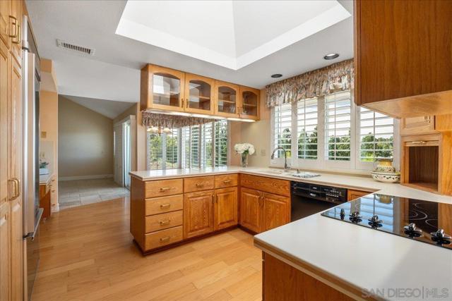 Nestled in prestigious Valle Verde Country Club Estates of Poway, this exceptional single-story residence offers the perfect blend of space, comfort, and scenic beauty. With 2,550 square feet, the home features 5 bedrooms, 2.5 bathrooms, and a spacious 3-car garage, all thoughtfully designed within a flowing and functional floor plan. From the moment you enter, the beautiful travertine flooring and abundant natural light create a warm and inviting atmosphere. Custom shutters, along with dual-paned tinted windows featuring retractable self-storing screens, enhance both the comfort and energy efficiency of the home. The living room connects to the formal dining room, providing an ideal setting for dinners and larger gatherings. At the heart of the home, the kitchen features a built-in refrigerator and opens to a bright breakfast area and a large family room complete with vaulted ceilings, custom built-in cabinetry and a bar area—perfect for entertaining and everyday living. Designed with privacy in mind, the primary suite is tucked away on its own side of the home, offering a peaceful retreat, while four additional bedrooms and a full bath are located on the opposite side—ideal for family, guests, or home office flexibility. Multiple living areas capture beautiful neighborhood views and western-facing vistas, with sightlines from the dining room, kitchen, breakfast area, and family room. Step outside to the backyard where a patio invites outdoor dining, entertaining, and relaxation while enjoying spectacular sunset views over Poway and Rancho Bernardo. The location in Poway Unified School District offers an incredible lifestyle with easy access to some of Poway’s most beloved destinations. Close to Valle Verde Park with sports fields, playground and picnic areas. Nearby, Blue Sky Ecological Reserve spans over 700 acres of preserved natural beauty with scenic hiking trails, while Lake Poway offers fishing, paddle boat rentals, playgrounds, picnic areas, BBQs, and more than 55 miles of surrounding trails. Cultural and community attractions including the Poway Performing Arts Center and charming Old Poway Park are just minutes away. Combining scenic views, generous living space, and an unbeatable Poway location, this remarkable home offers a rare opportunity to enjoy the best of North County living.
