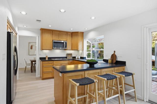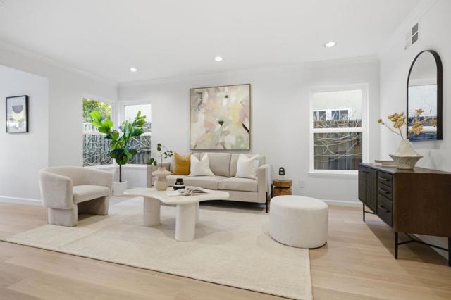 This chic 2-story home in the gated community of Kentfield Commons blends transitional design with a light-filled floor plan, offering stylish and comfortable living. A covered brick front porch makes for a warm and inviting entry, while inside a stunning great room impresses with vaulted ceilings and dual glass doors opening to the rear patio through the formal dining room. The chefs kitchen features stainless steel appliances, honed countertops and custom cabinetry. The breakfast area opens to the back patio as well as to the media room with custom built-ins and a half bath with a hammered copper sink. Upstairs, the large primary suite is a private retreat featuring a bath with Mediterranean finishes, while three additional bedrooms and full bath are situated off the hallway. Additional highlights include luxury vinyl plank downstairs, newly carpeted bedrooms, dual-pane windows, contemporary lighting and freshly painted interior and exterior. The private, low-maintenance backyard features a brick patio, native plantings, flowering bulbs and landscape lighting. Kentfield Commons amenities include a gated entrance, a 2 ½ acre park, playground and a Junior Olympic pool. Easy access to top employers, downtown Redwood City, Stanford University, shopping, dining and entertainment.