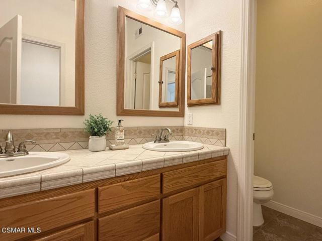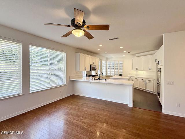 Don't miss this spacious and nicely upgraded home, located in the highly desirable Conejo Valley Unified School District and within the boundaries for award winning Lang Ranch Elementary. Nestled in the gated community of Verdigris, this property enjoys numerous amenities, including a pool & spa, two tennis courts, a playground and greenbelt walkways. This home offers cathedral ceilings and a beautifully remodeled, island kitchen that features extensive counter space done in quartz and amply cabinetry. You'll appreciate thoughtful touches like the stylish new pulls and the uniquely placed countertop windows, which bring additional natural light to your work space. The kitchen also boasts a breakfast area, separate bar seating and direct access to the rear yard. Adjacent to the family room, this is truly the heart of the home. The first floor is rounded out by a formal living and dining space, a bedroom, powder room and convenient laundry room. The second level features the primary suite, complete with a master retreat that's ideal for an office, nursery or exercise room. Need a lot of closet space? Not a problem! This suite provides a walk-in and separate reach-in closet, both of which have been outfitted for maximum function and utility. Don't miss the newly renovated primary bath! It offers a soaking tub, dual vanities and a separate stall shower - all designed with a modern flair. Upstairs, you'll also find two secondary bedrooms with great closet space and a guest bath. EV charging ready - 240V plug in garage. The private rear yard has plenty of grass and patio space. It's the perfect spot to relax or play. Well located within Conejo Valley, this property is close to hiking trails, parks, shopping and dining.