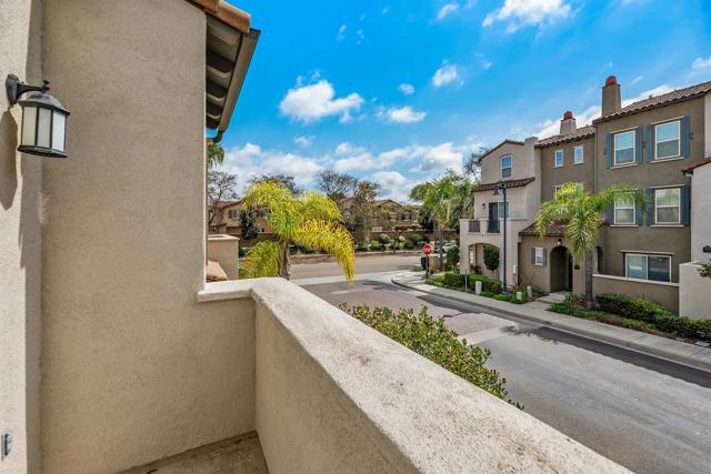 Former builder model within the San Moritz complex in 4S Ranch that’s just a minute or two walk to both 4S Commons and Patriot Park. Very clean tri-level townhome with an attached two-car garage and in-unit stacked laundry, 2 bedrooms + alcove, 2.5 bathrooms, 1335 square feet. The 1st floor consists of the secondary bedroom with an ensuite bathroom, two car garage with an epoxy finished floor, dual overhead storage racks + built-in storage closet. The 2nd floor is the heart of the home with the kitchen, combo family and dining areas, gas fireplace, balcony, powder and laundry rooms. The kitchen has stainless steel appliances, Silestone counters, gas cooktop and a center island with bar seating. The 3rd floor is the primary suite with an alcove that could be a home office or other. The primary also has dual sinks and walk-in closet. Builder upgrades include: faux brick wall and built-in entertainment center and wine racks at the main level, ceiling mounted speakers. Solid surface flooring throughout consisting of stone and wood laminate. The house has AC for those needed warm days. Street parking close by. Located within the highly regarded Poway Unified School District (PUSD) – Monterey Ridge Elementary (.6 miles), Oak Valley Middle (2.1 miles), Del North High (1.2 miles). The San Moritz community amenities include a pool, spa and BBQ areas.