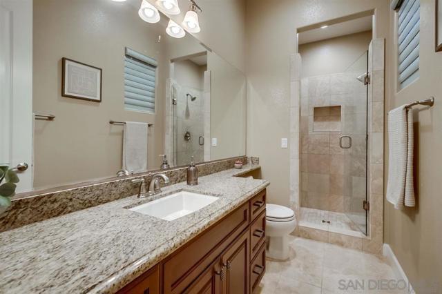 Welcome to this special home in the heart of Encinitas. It’s a former model home sitting on the largest lot in a quiet 12-home community tucked away on a private road — and it’s less than a mile from Moonlight Beach.Step inside and you’ll immediately notice the soaring ceilings and bright, open layout that make this home feel spacious and welcoming. The 20-foot entryway and 10-foot ceilings throughout create a true sense of volume and flow. There are also three fireplaces that add warmth and character. The original owner installed a 15-panel owned solar system in 2022; grandfathered for NEM3 credit. Plus, the property is smart-alarm enabled for peace of mind. One of the standout features of this home is that it’s a single-story residence — all on one level. That means no going up and down stairs, and the overall footprint is larger than most two-story homes, making the living spaces feel even more open and connected. The thoughtful floor plan is designed with two separate wings: the primary suite on one side and the other bedrooms on the opposite side for extra privacy. The primary suite includes dual walk-in closets, a sitting area with its own fireplace, and direct access to the backyard. The granny suite features a private entrance, walk-in closet, and full en-suite bath, making it ideal for extended family, guests, or a privateoffice. In the back bedrooms, you’ll also find Hunter Douglas blinds, a high-end touch that adds both beauty and function. The chef’s kitchen has GE Monogram appliances, dual convection ovens, a griddle, warming drawer, pot filler, and hidden spice racks built into the range columns. A butler’s pantry and secured wine room are conveniently nearby, making hosting effortless.In the family room, custom windows frame a tranquil waterfall feature in the backyard — a perfect spot to relax or gather with friends. The home is also equipped with two HVAC zones, allowing you to set the perfect temperature in different areas of the home. Parking is a breeze with two separate garages that fit three cars total, plus a driveway that comfortably holds four more vehicles. And with ample private street parking for guests, you’ll never have to worry about space when entertaining. This property brings together coastal living, privacy, and smart design, all just minutes from the beach, great restaurants, and everything Encinitas has to offer. Low fire risk property as government determined (see confidential remarks and Documents for information)