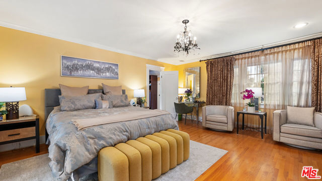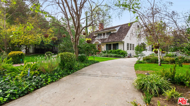 Welcome to this charming cottage-style home in the heart of Glendale Woodlands Area spanning over 4,000 square feet, this residence offers a traditional layout with 4 bedrooms and 3.5 bathrooms. Elegant crown moldings, a cozy fireplace, and seamless flow into the family room highlight the home's inviting character. The formal dining room, anchored by a statement chandelier, connects to a chef's kitchen equipped with ample storage, granite countertops, a Sub-Zero refrigerator, and a WOLF range. For more casual gatherings, the entertainment room opens through French doors to a lush backyard retreat. The spacious primary suite features its own set of French doors leading outside, a generous walk-in closet, and a spa-like bathroom. Three additional bedrooms and two bathrooms complete the home's interior. Step outside to a resort-style backyard, where a sprawling patio, flat grassy area, sparkling pool, and relaxing jacuzzi create the perfect oasis for entertaining and unwinding.