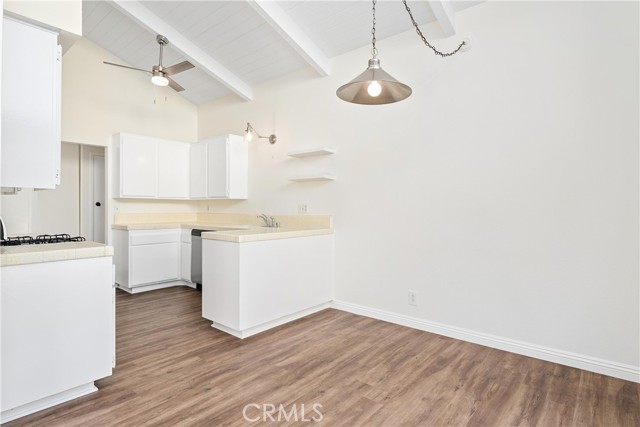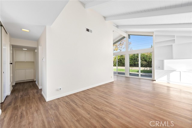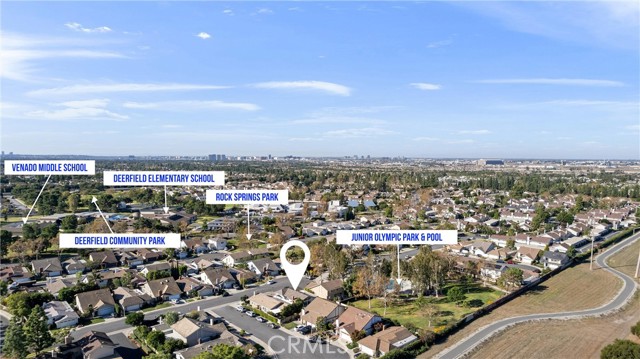 Nestled on a serene cul-de-sac in the highly sought after community of Deerfield, 14 Rock Springs, Irvine is a single-level Mid Century Modern gem just waiting for its next lucky resident. Featuring 3 bedrooms and 2 bathrooms across 1,350 square feet, this home offers a perfect blend of features, architectural character, and location. After meandering through the charming front courtyard, an open-concept floor plan welcomes all who enter with soaring vaulted ceilings in the Great Room that feature beams and tongue-and-groove ceilings, enhancing the Mid Century Modern aesthetic. The Family Room boasts a cozy fireplace, an open concept floor plan that opens to the Dining Room and Kitchen, and three sliders that lead to the backyard, seamlessly connecting indoor and outdoor living spaces. The home is bathed in natural light and exudes a modern aesthetic with newer LVP flooring and fresh crisp white paint throughout. The entertainer's backyard is spacious and private, featuring a grassy area, large patio, and mature fruit trees. The Kitchen is truly the heart of the home and features the same soaring ceilings, as well as stylish open shelving, plenty of cabinet and counter space, and stainless steel appliances. The primary suite is a true retreat with a large ensuite bath and a walk-in closet, providing a private haven within the home. Two additional bedrooms, including one that can conveniently be used as an office, a hall bathroom, and a 2 car garage with attic storage + private driveway complete the home. Located within the award-winning Irvine school district, this home is within walking distance to neighborhood amenities, including a junior olympic-sized pool, spa, playground, walking paths, and greenbelts that lead to Deerfield Elementary, Venado Middle School, and Deerfield Park, which includes tennis courts, volleyball courts, and a large lawn. The home is also conveniently located adjacent to Culver Plaza and Crossroads Shopping Center, providing easy access to shopping and dining options. With quick access to freeways, The Great Park, and Irvine Spectrum, this home offers easy living with refined style and convenience. Call to book a tour today!