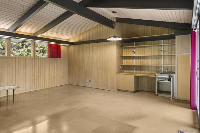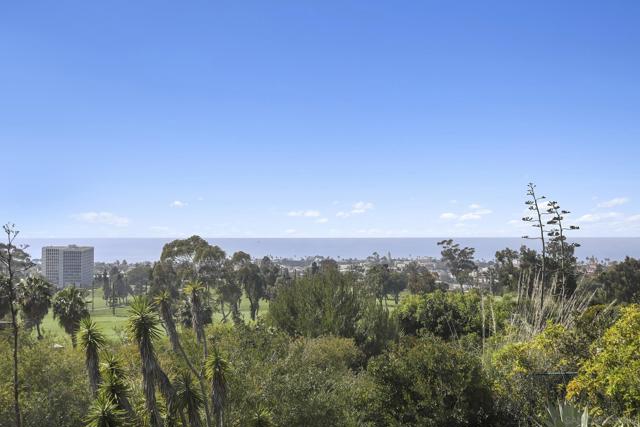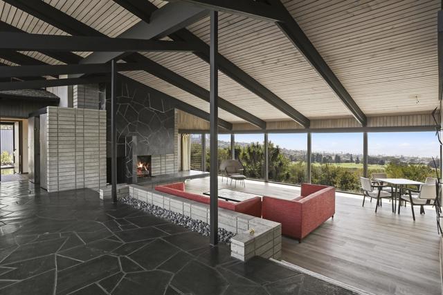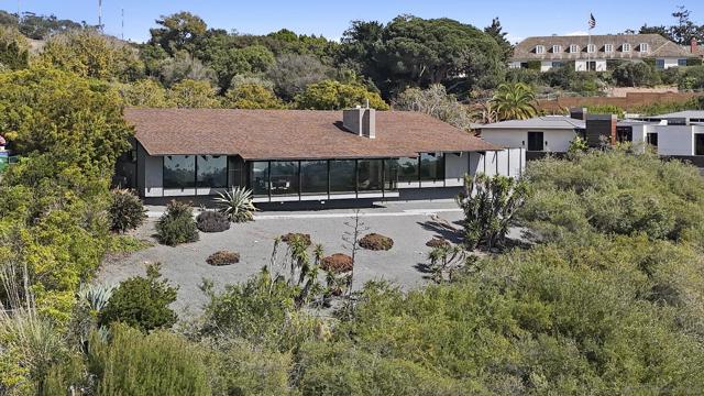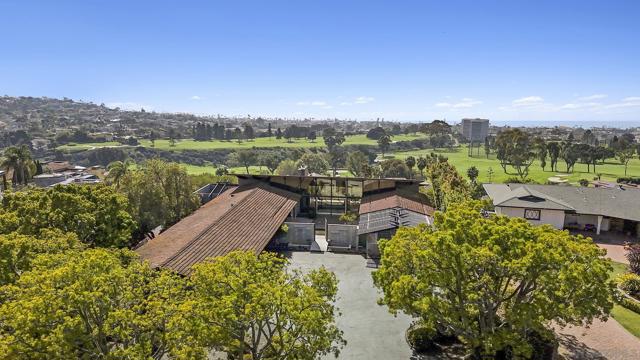Sweeping, unobstructed panoramic ocean views beyond the rolling green hills of La Jolla Country Club are found at this mid-century modern masterpiece by noted architect Dale Naegle. Known as the Mills, Mansfield Residence, the Mills Act-qualified and designated historic home is organized into three distinct volumes arranged around a secluded courtyard. Jaw-dropping views are seen from the step-down living room and bedrooms, artfully featuring double-height windows, rafters, and additional hallmark elements of mid-century design. The primary bedroom retreat incorporates a private terrace. The front entry patio, with reflective pool and subtle landscaping, abuts an exterior, shaded garden room with space for respite and work. Thoughtfully-designed low maintenance pebbled gardens and intimate outdoor niches provide privacy and charm throughout the property.
