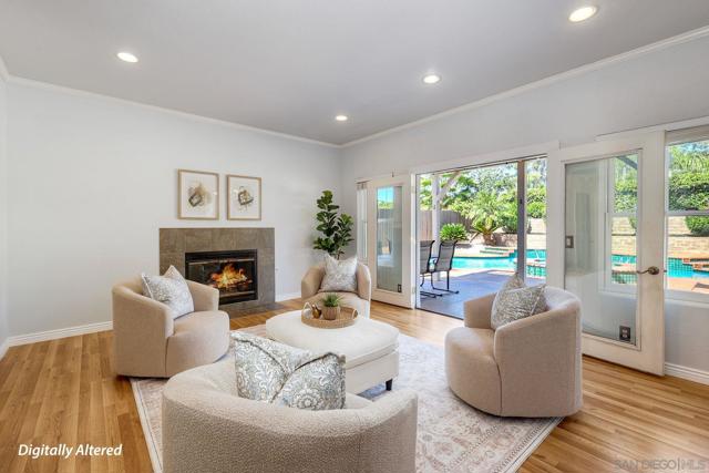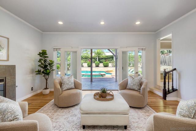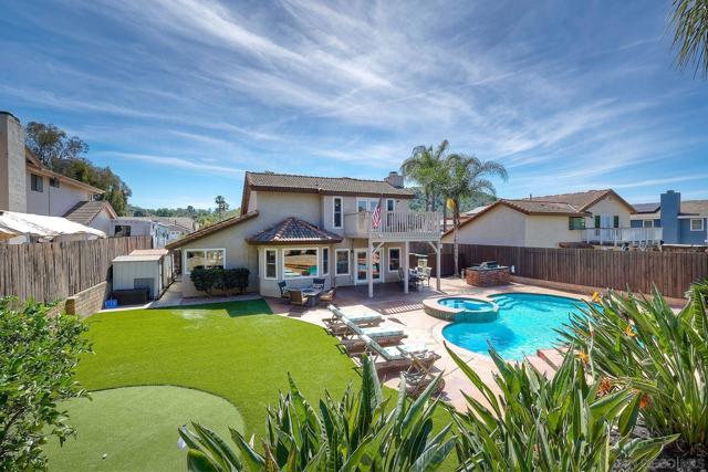 Ideally located in Poway, this 4-Bedroom, 3.5-Bath home sits on a 10,531 sq. ft. lot and offers an incredible opportunity to enjoy one of the area’s most sought-after neighborhoods. Across the street from top-rated Poway schools, near the Poway Rodeo Grounds, Old Poway Park, weekly farmer’s market and miles of scenic walking and horse trails, the location perfectly captures the outdoor lifestyle Poway is known for. The home features a main-level bedroom with en-suite bathroom and its own private entrance and separate climate control, offering flexible living options for multi-generational households or extended family and guests. Upstairs you will find two more guest bedrooms, a guest bathroom and the primary bedroom suite featuring a private deck, large walk-in closet and vaulted ceilings. The spacious floor plan offers comfortable living areas filled with natural light and vaulted ceilings. The 35-owned solar panels provide excellent energy efficiency in addition to the updated dual-paned windows throughout. The backyard is designed for enjoying Southern California living with a pool and spa, expansive patio space, built-in BBQ, turf with putting green and mature landscaping. Two sheds allow for extra storage. With great curb appeal, a two-car garage with epoxy flooring and storage, large driveway and a prime location near parks, schools, and trails, this Poway property offers space, flexibility and an exceptional setting to call home.