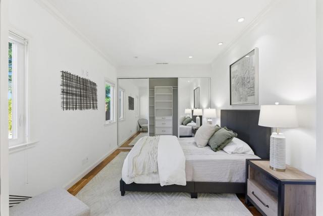 Meticulously maintained and beautifully remodeled home in the desirable Woodside Plaza neighborhood of Redwood City. This home shows pride of ownership throughout and features Acacia hardwood flooring, crown molding, and recessed lighting. The gorgeous kitchen offers abundant counter space, custom cabinetry, and stainless steel appliances. The primary bedroom opens to a private and serene backyard. Remodeled bathrooms are bright and inviting, with the primary bath featuring a jetted tub, open shower, and cathedral ceiling. A convenient ΒΌ bathroom is located next to the garage and laundry area. The backyard includes a paved patio, spacious lawn area, and a charming shed known as the Margarita Bar. The garage features high ceilings designed to accommodate a car lift. A clean and well-insulated attic space of approximately 960 sq. ft., with ceiling heights exceeding 7 feet at the highest point, offers excellent storage or creative possibilities. Air conditioning and solar provide year-round comfort and energy efficiency. Conveniently located near shopping, restaurants, schools, and major commute routes.