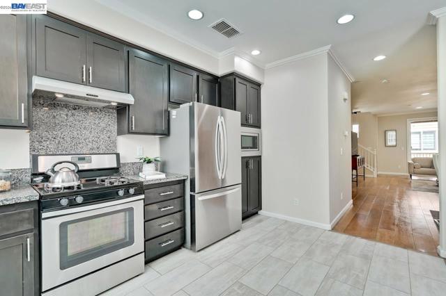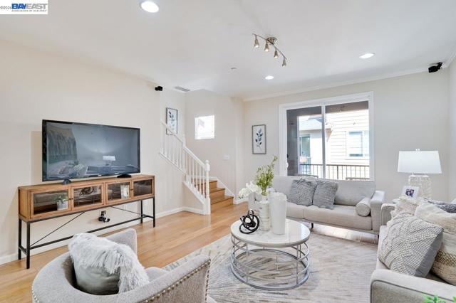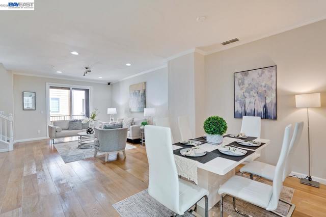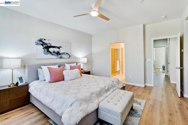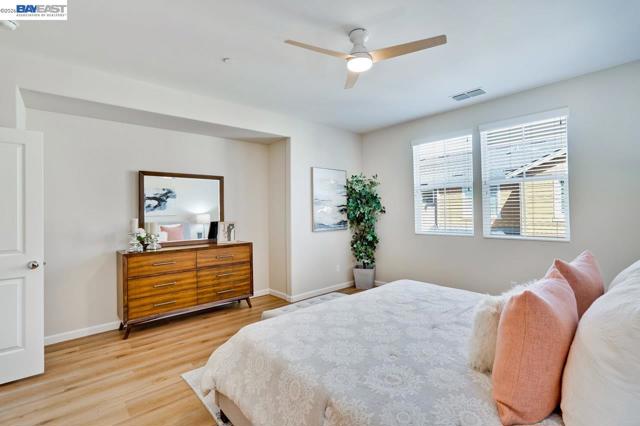 Fantastic Tri-level 3BR/4BA townhouse-style offers nearly 1,800 sq. ft. of premium living space in the SanDisk/Cisco Tech Hub. Front door North Facing! The Main Level 2nd floor: open-concept living area flows seamlessly onto private balcony, Engineered hardwood flooring. The gourmet kitchen featuring quartz countertops with backsplash, SS appliances, Gas range and built-in microwave. The ground-floor bedroom with a Full en-suite Bath, perfect for guests, multi-generational living or potential rental. Upper Level: Two tranquil master suites await on the third floor, each boasting generous walk-in closets. Premium Features: zoned central Heating and A/C, a dedicated laundry room located near the bedrooms, tankless water heater, and Side-by-Side 2 car garage. Resort-Style Amenities: Enjoy low HOA ($280) dues that cover premium amenities, including a heated pool, fitness center, clubhouse, BBQ area, pet spa, outdoor fireplace, Also covers trash, exterior maintenance, and hazard insurance. Prime Milpitas Location: Unbeatable proximity to major tech hubs like Cisco, SanDisk, and KLA. Enjoy weekend errands at nearby Walmart, or Milpitas Square. With easy access to BART and Freeways 880/237.