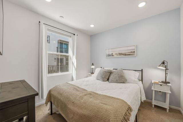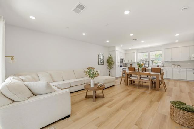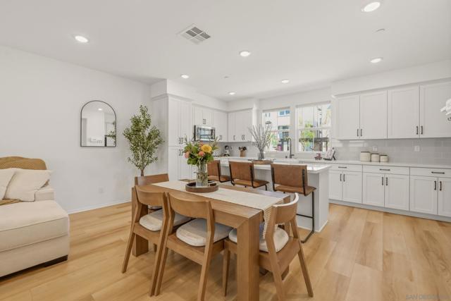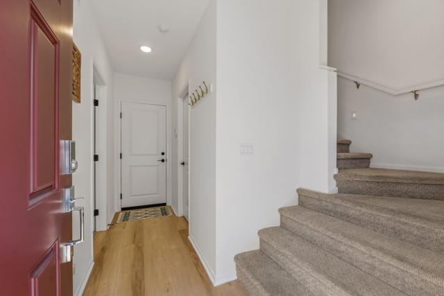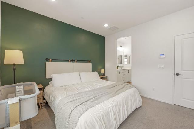 Welcome to 433 Jupiter Gln in Escondido’s desirable Eclipse community. Built in 2023, this contemporary tri-level townhome offers a flexible modern layout with stylish upgrades throughout. The entry, kitchen, living, dining, and baths feature upgraded vinyl plank flooring, while premium carpet, recessed lighting, and upgraded stair lighting add warmth and comfort throughout the home. The chef’s kitchen is beautifully appointed with soft-close cabinetry, subway tile backsplash, bronze hardware, and KitchenAid appliances including a 5-burner gas cooktop, separate oven, microwave, and dishwasher. The spacious primary suite features recessed lighting, a walk-in closet with mirrored door, dual medicine cabinets, upgraded shower tile. Additional highlights include upgraded doors, hardware, and an included washer and dryer. Eclipse residents enjoy a pool, spa, BBQ area, lounge space, and playground near downtown Escondido, shopping, dining, and convenient freeway access.
