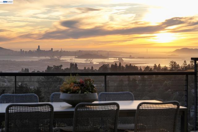 Breathtaking San Francisco, bay and canyon views with outstanding indoor/outdoor living are the backdrop to an exceptional life in this upgraded 3+BD/4BA Montclair home. This sophisticated 1929 SQFT home is light and airy, featuring floor to ceiling windows and la cantina folding glass doors. The sweeping views span from Mount Tam to the Golden Gate Bridge, from San Francisco to Oakland. The home’s dramatic open floorplan features an expansive deck, a beamed wood ceiling, fireplace, dining area, and a modern eat-in kitchen. The main floor is complete with a full bath and sunny bedroom with French doors onto a front patio surrounded by lush landscaping. Downstairs find a laundry room, full bath, and two more bedrooms, including a luxurious primary suite. The primary bedroom features a custom walk-in closet, chic ensuite bath with wet room, and private deck with spectacular views. Unwind in the hot tub admiring the entire SF Bay. This level also connects to a new full bath and bonus room with exterior access, ready as an office, exercise space, or playroom. A 2-car garage and ample storage offer convenience. Enjoy close proximity to Montclair village, public/private schools, and miles of trails to explore in the East Bay parks.