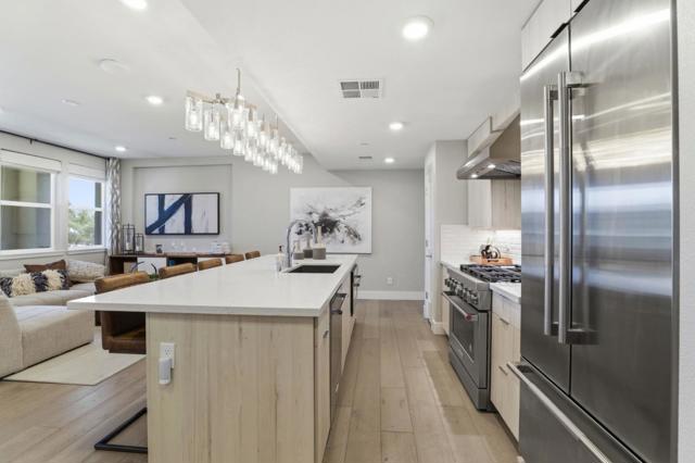 FULLY TURNKEY and ALL INCLUDED IN THE SALE, this private corner-lot former model home showcases over $200K in upgrades, designer-selected furniture, décor, artwork, and an OWNED 9-panel solar system. Built by Toll Brothers, this exceptional residence offers upscale design, quality construction, and rare privacy with no direct neighbors on three sides. The sunlit main level features an open-concept layout that seamlessly connects the designer kitchen, inviting living room, built-in office nook, and spacious dining area with access to a covered balcony. High ceilings, designer decorative lighting, hardwood floors, elegant quartz slab countertops, white brick tile backsplash, slate-panel cabinetry, a massive island, KitchenAid range, and built-in refrigerator create a refined modern living experience. Both spacious suites offer modern en-suite baths, including a luxurious primary suite with double vanity, walk-in shower, and walk-in closet. Additional highlights include a powder room, attached 2-car garage, laundry area, tankless water heater, and Nest controls. Enjoy low Santa Clara utilities and a prime location just minutes from Costco, Whole Foods, Lawrence Caltrain, major tech campuses including NVIDIA, Apple, Google, and Meta, with easy freeway access for effortless commuting.