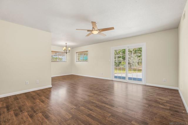 Escape to your private hilltop sanctuary on 1.36 acres of flat usable land in the heart of Ramona. Tucked away at the end of a private road in a peaceful silent zone, this meticulously updated main residence features an airy open concept floor plan with modern laminate flooring and carpet, recessed lighting, and a chef’s kitchen anchored by sleek granite countertops and stainless steel appliances. Breathtaking panoramic mountain views are framed through large bright windows throughout the home. Outside, the expansive lot provides a blank canvas for an equestrian setup, pool, or vineyard. The property includes a detached outbuilding with a one car garage and a covered carport. Enjoy unparalleled privacy and the sustainable benefit of an active solar system, all just minutes from local schools, shopping, and famous Ramona wineries. Detached garage, workshop, and carport. Note supplement for residence amenities.