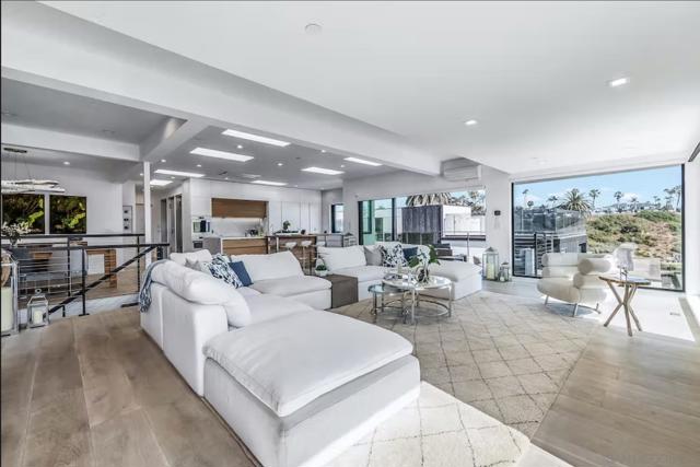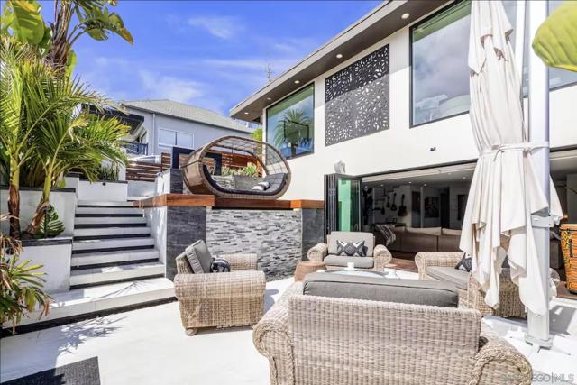Available April 20, 2026 to June 1, 2026 only. Amazing, Furnished Beach Home with Private Hot Tub, Deck, Waterfalls, Garage, W/D. A Modern and custom home in the best of locations! Across the street from main entrance to Moonlight Beach with no steps to climb. Three short blocks for all the 101 has to offer. Outstanding beach & ocean views from many rooms of the house including the first floor family room which opens to a resort like yard w/state of the art spa, two waterfalls & custom fountain. The main level has a glorious and bright great room with beach & ocean views as well as a convenient patio with an outdoor Evo Grill. Home features two complete levels of comfort and convenience, this modern and custom home is waiting to provide your family and friends with beach living memories of a lifetime! Two blocks from the main street, right across the road from Moonlight State Beach with no steps to climb, and featuring two complete levels of comfort and convenience, this modern and custom home is waiting to provide your family and friends with beach living memories of a lifetime! Steps from the beach, you have a beach facing, gated front and side yard with bright and spacious outdoor living space filled with modern and thoughtful decor, gorgeous porcelain floors, and lots of contemporary furniture throughout. The modern spa tub has the best view of all the beach action and the three levels of waterfalls which adds privacy. The is seating around a large, modern fire pit and a full wall opening up to the family room on the first floor. Head up the stairs onto the wooden deck to find a looped, wicker lounge chair, another waterfall fountain, and wonderful beach views amid a garden of palms and succulents. This resort-like yard and also includes 12 foot umbrella, a four-person dining table, ping pong table, Sur and beach gear shack, and fantastic views of the beach. The first-floor family room features a large, sectional couch surrounding a mounted 80 inch flatscreen TV. You'll also find a well-equipped kitchenette, a state of the art massage chair, a number of musical instruments that include a keyboard and guitars, access to 3 bedrooms and 2.5 baths and the laundry room and garage. Through the front door, the great room is bright and sunny, with a state of the art kitchen and large dining room and a guest bedroom with Tonal Gym. The living room area has a large entertainment space featuring a washable, Restoration Hardware Cloud, sectional sofa, a gas fireplace, a mounted flatscreen TV, and floor-to-ceiling windows with views of the beach that the pictures do not due justice to, as the view is exceptional with height above the beach, playground, volleyball courts, fire pits, cliff and white water waves. Serve a large family at the handsome wood dining table then pull a special bottle from the wine fridge to enjoy on the deck with friends. When it's time to call it a night, you'll have five spacious bedrooms and four-and-a-half baths for everyone in the group to take advantage of. The primary bedroom in off the great room and includes en suite bath and access to the deck, while there is also a Murphy bed available in the second-floor multi-purpose room - a great space for fitness, yoga, or to indulge in a soothing massage (a table is provided).