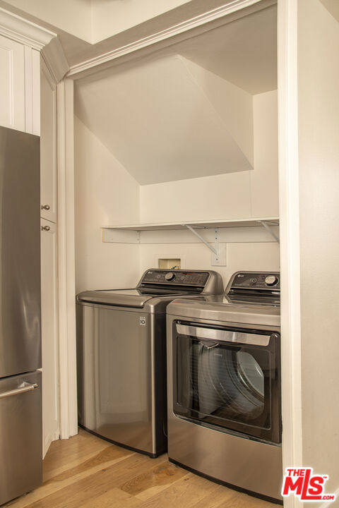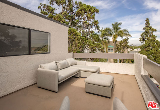 Front-facing and thoughtfully updated, this townhouse-style residence offers the feel of a private home in an intimate Santa Monica setting. This light-filled 2-bedroom, 2.5-bath home features soaring ceilings, expansive windows, and an open, airy layout throughout. The living room is anchored by a fireplace and opens to a lush, greenery-lined patio, while the adjacent dining area flows seamlessly to a second outdoor space, perfect for indoor-outdoor living. The remodeled kitchen is tastefully appointed and includes a convenient in-unit laundry area. Upstairs, the spacious primary suite showcases high ceilings, abundant natural light, and a beautifully updated bathroom with dual sinks, spa tub, and generous closet space. A well-sized secondary bedroom offers excellent light and storage. A versatile loft provides the ideal space for a home office or gym and leads to a large private rooftop terrace with lovely city views. Additional features include hardwood floors, a fireplace, two parking spots in the garage, an EV charger for unit 1 exclusive use, and a storage unit in the garage. Located just moments from the ocean, dining, shopping, and all the best of the Westside, this is an exceptional lease opportunity in a prime Santa Monica location.