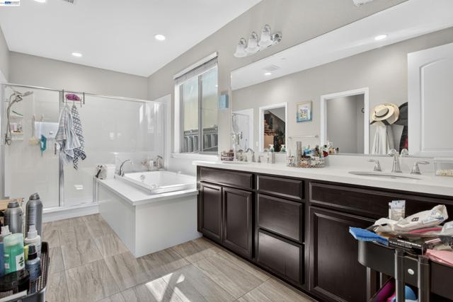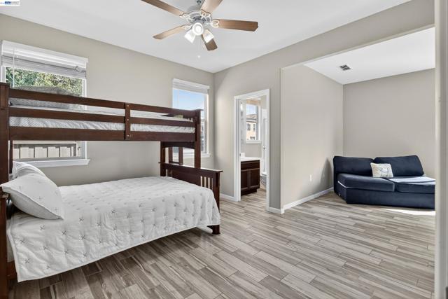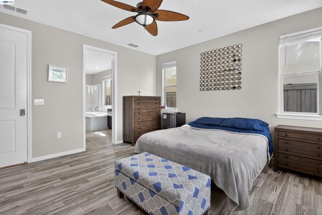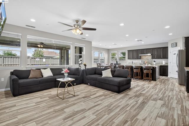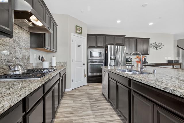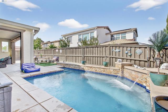 Welcome to an innovative living style in this Stunning home with 5 bedrooms and 4.5 bathrooms.The beauty begins with custom flooring throughout most of the house. The downstairs Kitchen features lots of cabinets, granite counters, a large island, gas stove, and pantry, and flows into the dining room and living room. Downstairs is a large master bedroom with a walk-in closet, dual sink vanity/storage, shower, and a large soaking tub. There are 2 additional bedrooms, with 1-1/2 baths, a laundry room with cabinets, and another dual sink vanity/storage, and linen closet. Downstairs also features a separate in-law unit with its own entrance, bedroom, full bathroom, small walk-in closet, kitchenette, and living area. Upstairs you will find an oversized bedroom, 1 full bathroom, and a large loft. The backyard features a California room with recessed lighting, fireplace. The showpiece of the backyard is the Spool (spa/pool) gas heated, has a waterfall, 6 spa jets, and in-ground colors lighting. Great for backyard enjoyment all year long!. This property has OWNED Solar Panels. $150,000.00 in upgrades. Nestled in the Summer Homes area of River Islands Community, it has: 3-Elementary Schools, 1-high School, 10+ miles of walking trails, children parks, Lakes, Boathouse Rest. & Sports Areas