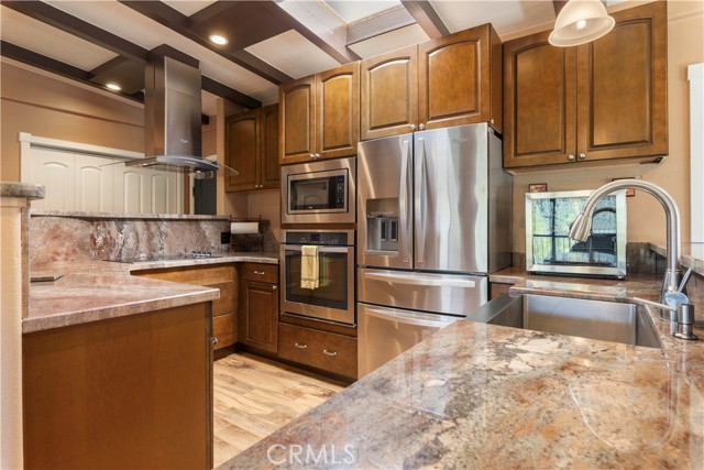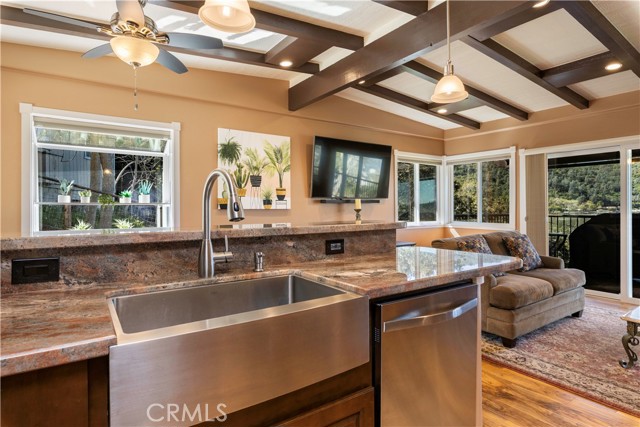Turn-key and beautifully renovated, this lakeview retreat overlooks Soda Bay and is ready for your next getaway or full-time lake living. This 2-bedroom, 1-bath home has been thoughtfully updated from top to bottom, offering a fresh, modern feel with engineered hardwood flooring throughout, recessed lighting, and Milgard windows and sliders that bring in natural light and frame the stunning views. The open-concept kitchen is designed to impress, featuring custom cabinetry, granite slab countertops carried through to the bathroom, high-end stainless steel appliances, and a matching apron-front sink—all perfectly positioned to take in the lake beyond. Outdoor living is just as inviting, with a covered back deck finished in Trex-style composite decking—ideal for relaxing or entertaining while enjoying the scenery. The property includes deeded lake access shared with just five other homes, complete with a private pier, dock, and boat launch into Clear Lake, making it easy to enjoy life on the water. Additional features include fenced-in parking and parking under the attached carport, along with a private, tucked-away setting that still offers convenience—just about 10 minutes to town for shopping and dining, and a short drive to Konocti Harbor Resort. Connected to public water with a septic system, and offered fully furnished, with a boat, this home is truly move-in ready and perfectly positioned to enjoy the best of lake living!