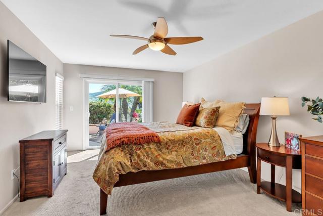 Step into this enchanting Lake San Marcos home and prepare to be captivated by breathtaking 180 degree hillside views from the moment you open the door. Every room is designed to showcase these stunning vistas, creating a serene escape you will love coming home to. The primary suite offers a large walk in closet and fabulous hillside views. The living room greets you with soaring ceilings and a cozy fireplace adorned with elegant ledgestone accents, perfect for unwinding after a long day. The bright and inviting kitchen boasts Corian countertops, ample cabinet space, stainless steel appliances, and a delightful breakfast nook. Both bathrooms have been beautifully updated, featuring sleek walk-in showers with modern tilework, chic new vanities, and stylish fixtures. Outside, the wraparound yard offers multiple patio areas, including a gated front courtyard, where you can relax, entertain, or simply soak in the incredible views. Additional highlights include newer windows throughout, an attached two-car garage, and the privacy of an end unit with only one shared wall. Nestled on a peaceful cul-de-sac, this home is just a short stroll from the Lakehouse Hotel & Resort and all the fantastic community amenities that Lake San Marcos has to offer. This is more than a home, it is your personal retreat, ready and waiting for you!