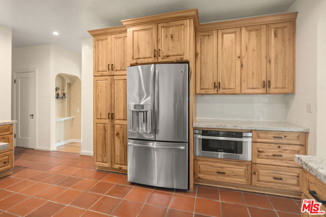 Wonderful opportunity to live in one of the original Uplifters Ranch houses built in 1927. Coddled amongst mature California Oaks, this three level, spacious half-timbered stucco house is placed near the top of the Rustic Canyon rim embracing canyon views from most rooms. When entering the front door one experiences the most impressive ballroom like living room, ordained with a hotel scale fireplace, hardwood and floor to ceiling windows making the ascent worthwhile. The main level also includes the formal dining room, a modern kitchen and office leading all embracing the outdoor gardens. The upper level has three bedrooms and two baths all facing canyon views, including a comfortable main bedroom suite. The lower level with the original unique basement bar and circular card room is part of a family room and is attached to two bedrooms and a bath, potentially can be used as a separate apartment with its own entrance. A two car garage is located at the street level. The house is in the heart of Rustic Canyon adjacent to the Rustic Canyon Park.