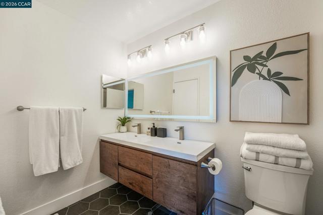 Meet your Marin County reset. Tucked inside Scottsdale Lake in South Novato, this ground-level end unit brings privacy, ease, and zero stairs, which in Marin hits like a lifestyle upgrade. One shared wall, tons of natural light, and an open layout that flexes for work, hosting, or slow mornings with coffee and your dog. The vibe is clean with a full glow up, luxury vinyl plank floors, a wood-burning fireplace, and seamless indoor-outdoor flow to your private patio and fenced yard moment. The kitchen delivers with Quartz counters, a farmhouse sink, sleek finishes, and integrated appliances for that designer look. The primary BR features a walk-in closet, while the BA gives spa energy with dual sinks and a custom-tiled shower. You’ll find generous in-unit storage throughout, plus separate exterior storage for bikes, boards, tools, or your Costco era. In-unit laundry and covered parking complete the convenience. Officially a 1 BR per assessor, but includes a finished bonus room with its own egress and private door, your wild card for office, gym, or guest space. Pool, spa, tennis, trails, Vintage Oaks, and easy access to 101 and 37 complete the lifestyle. Move-in ready, effortlessly cool, and right where you want to be.
